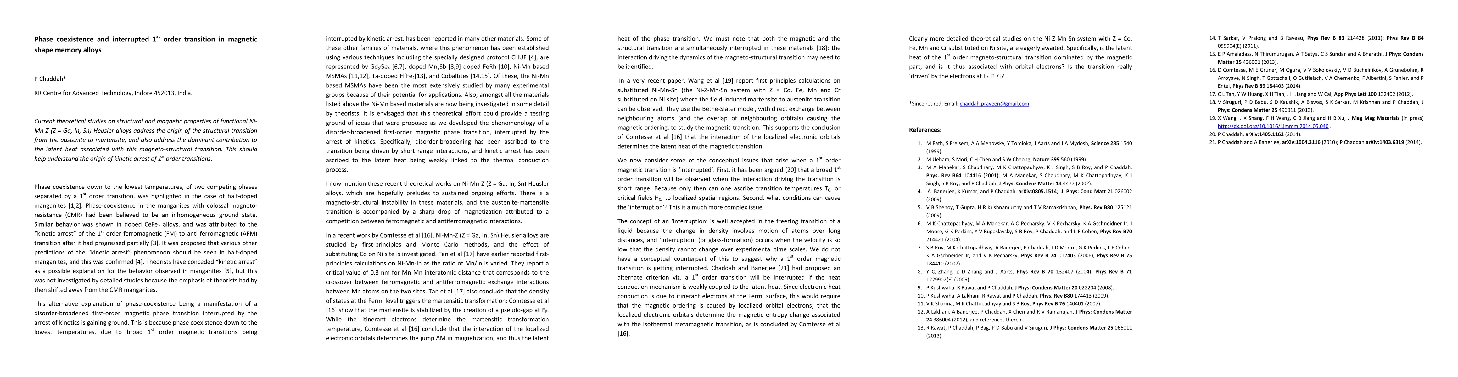 Current theoretical studies on structural and magnetic properties of functional Ni-Mn-Z (Z = Ga, In, Sn) Heusler alloys address the origin of the structural transition from the austenite to martensite, and also address the dominant contribution to the latent heat associated with this magneto-structural transition. This should help understand the origin of kinetic arrest of 1st order magnetic transitions.
