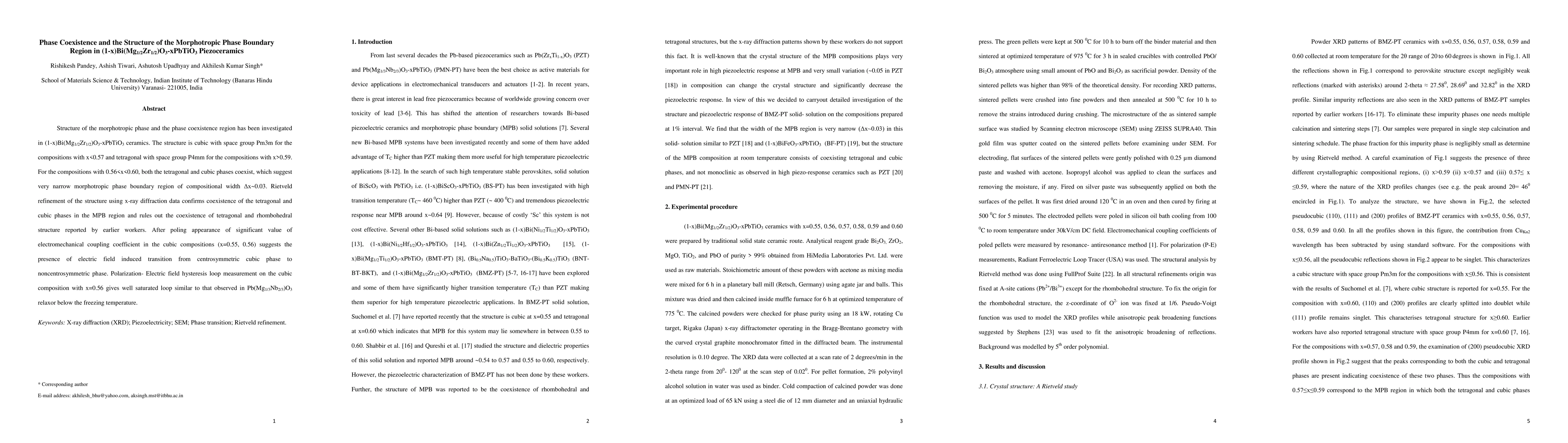 Researchers investigated the structure of (1-x)Bi(Mg1/2Zr1/2)O3-xPbTiO3 ceramics and found a narrow morphotropic phase boundary region with both tetragonal and cubic phases coexisting. This suggests potential applications in ferroelectric devices with improved performance.