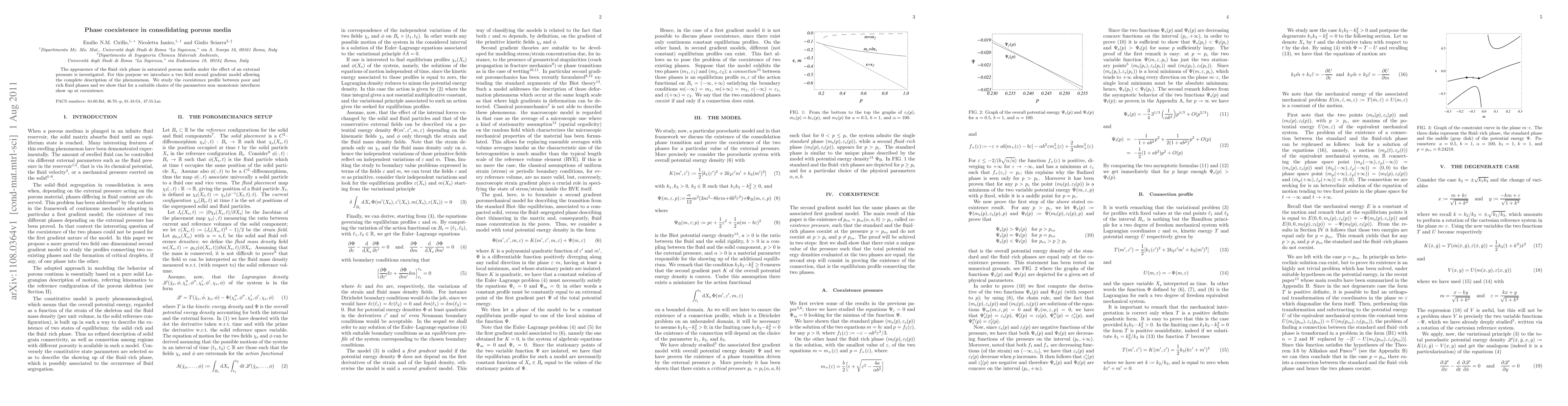 Researchers investigate how a fluid-rich phase appears in porous media under external pressure, using a new model that shows non-monotonic interfaces can form at coexistence points.