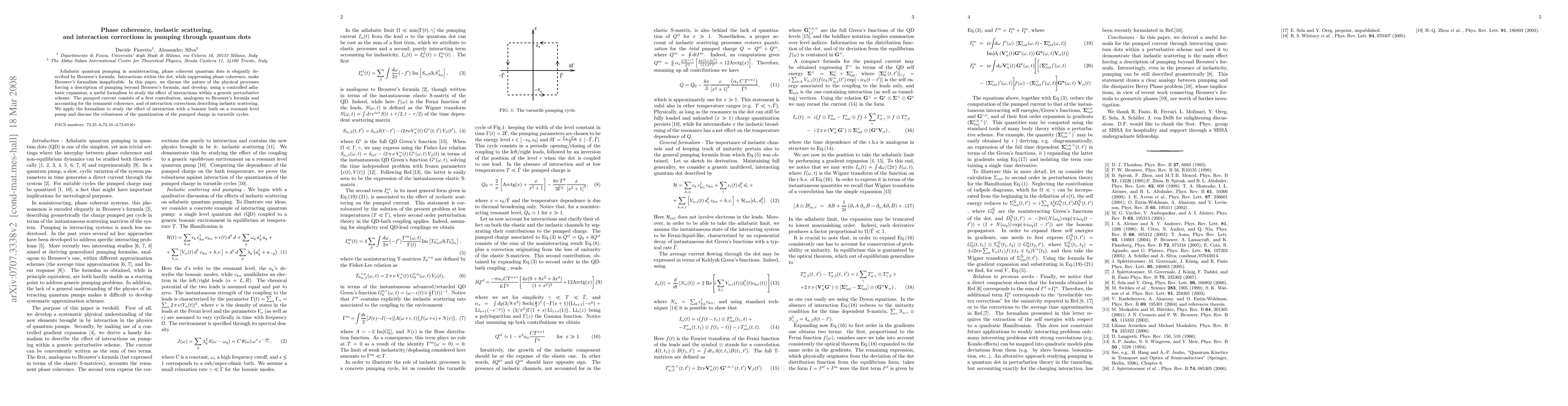 Adiabatic quantum pumping in noninteracting, phase coherent quantum dots is elegantly described by Brouwer's formula. Interactions within the dot, while suppressing phase coherence, make Brouwer's formalism inapplicable. In this paper, we discuss the nature of the physical processes forcing a description of pumping beyond Brouwer's formula, and develop, using a controlled adiabatic expansion, a useful formalism to study the effect of interactions within a generic perturbative scheme. The pumped current consists of a first contribution, analogous to Brouwer's formula and accounting for the remanent coherence, and of interaction corrections describing inelastic scattering. We apply the formalism to study the effect of interaction with a bosonic bath on a resonant level pump and discuss the robustness of the quantization of the pumped charge in turnstile cycles.