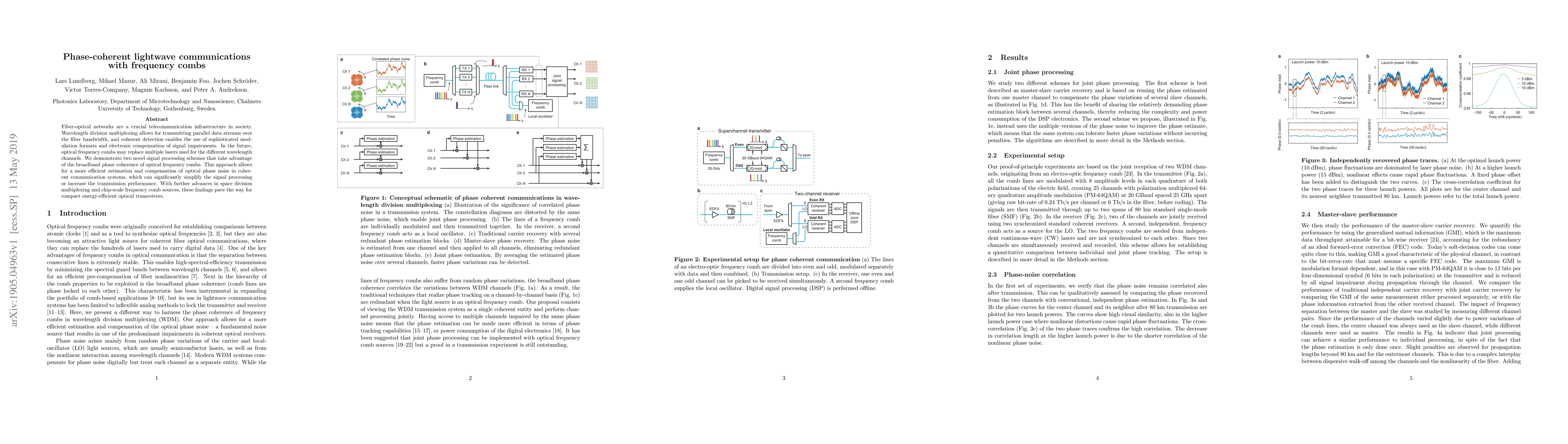 This paper explores the use of optical frequency combs in fiber-optical networks for phase-coherent lightwave communications, demonstrating two novel signal processing schemes that leverage broadband phase coherence to improve phase noise estimation and compensation. These advancements could lead to more efficient, compact, and energy-efficient optical transceivers.
