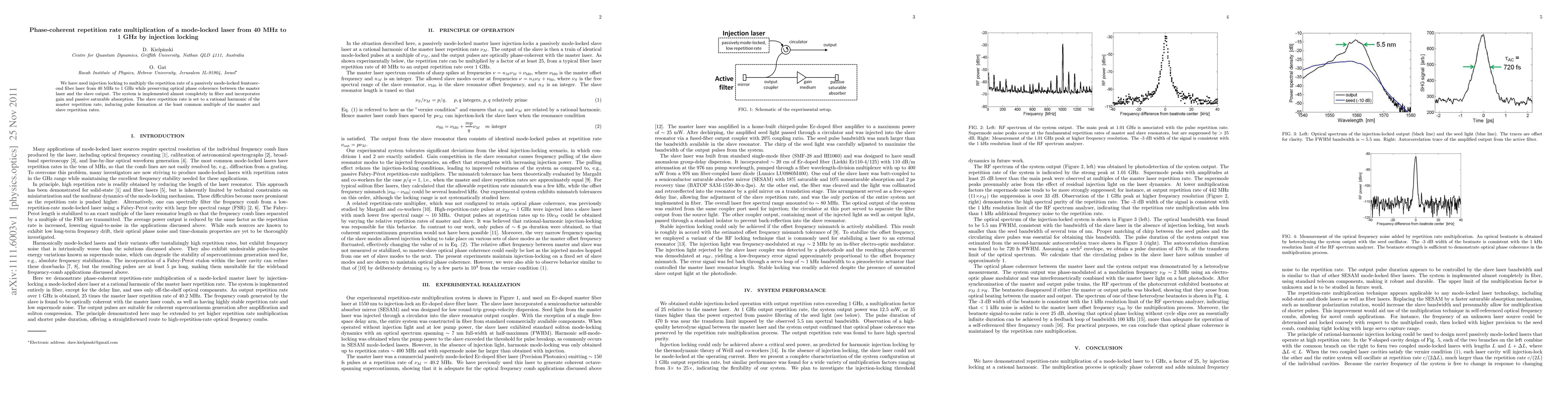 This research demonstrates a method to increase the repetition rate of a mode-locked fiber laser from 40 MHz to 1 GHz via injection locking, while maintaining phase coherence, utilizing a fiber-based system with gain and saturable absorption. The slave laser operates at a rational harmonic of the master, generating pulses at the least common multiple of their rates.