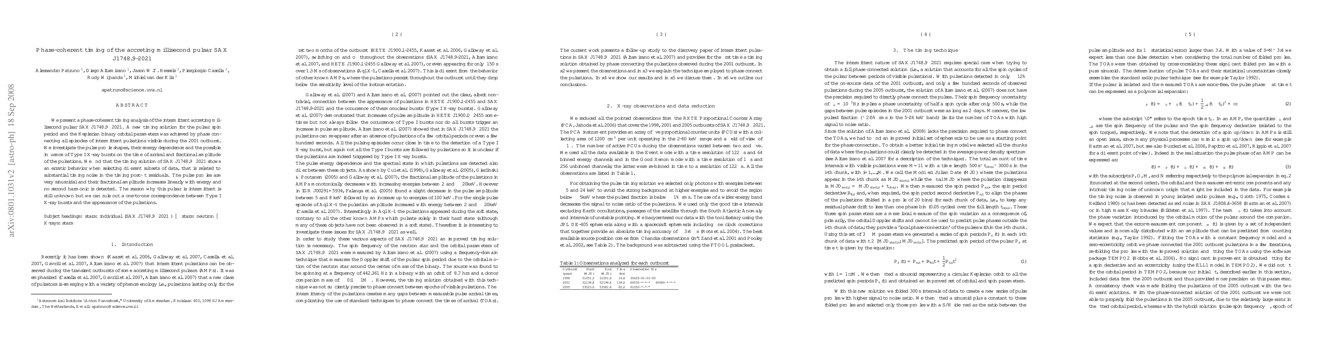 Researchers analyzed the accreting millisecond pulsar SAX J1748.9-2021, finding that its pulse profiles are sinusoidal with increasing amplitude at higher energies, but show erratic timing behavior due to substantial noise in their residual data.