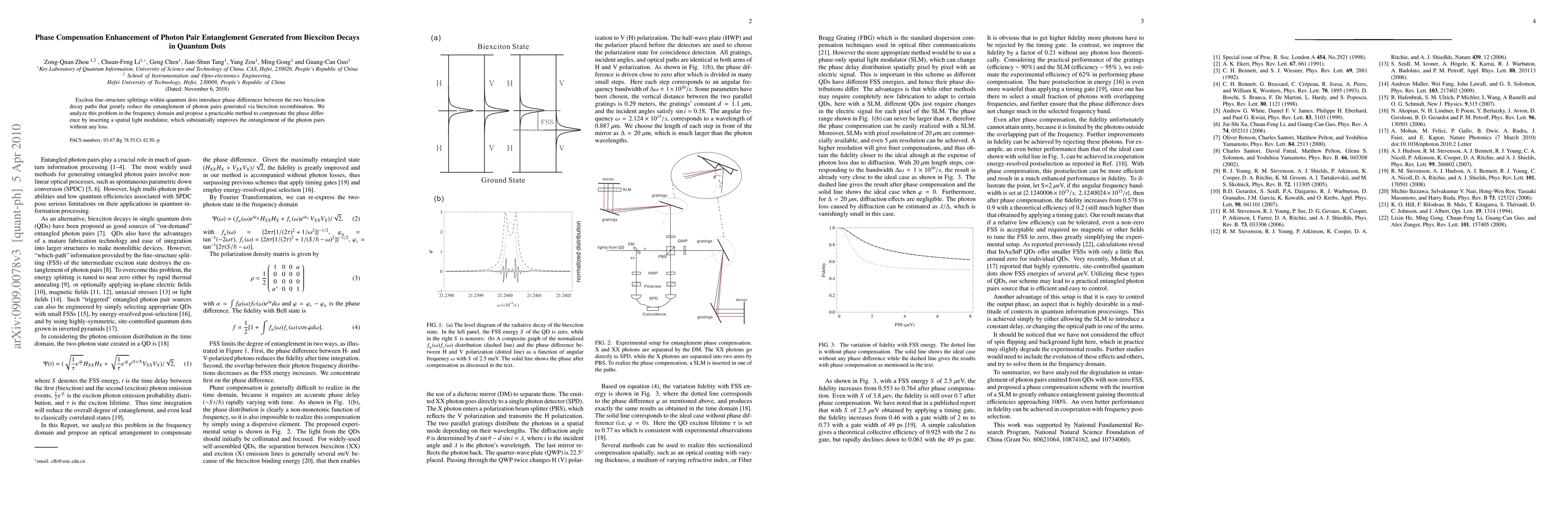 This paper addresses the phase differences caused by exciton fine-structure splittings in quantum dots, which degrade photon pair entanglement from biexciton decays. It proposes a method using a spatial light modulator to compensate for these phase differences, significantly enhancing the entanglement without loss.