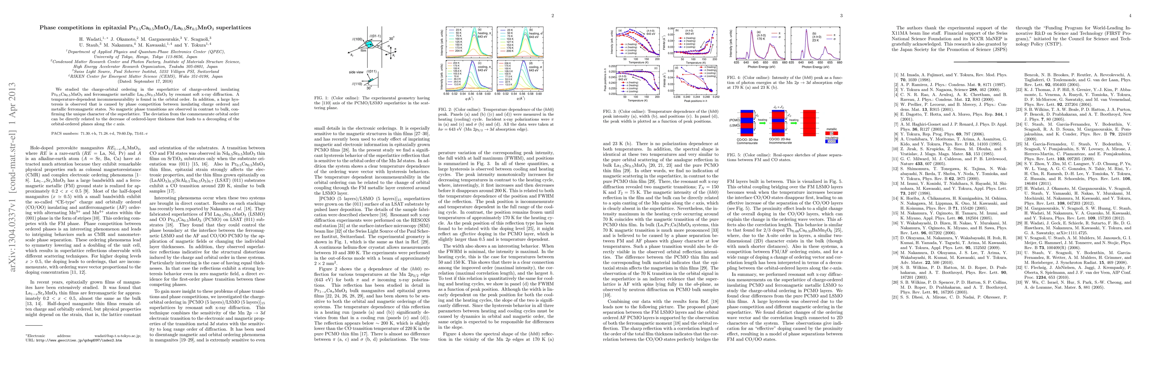 This study investigates charge-orbital ordering in superlattices composed of insulating Pr$_{0.5}$Ca$_{0.5}$MnO$_3$ and metallic La$_{0.5}$Sr$_{0.5}$MnO$_3$ using resonant soft x-ray diffraction, revealing a temperature-dependent incommensurability and a significant hysteresis due to phase competition between charge-ordered and ferromagnetic states.