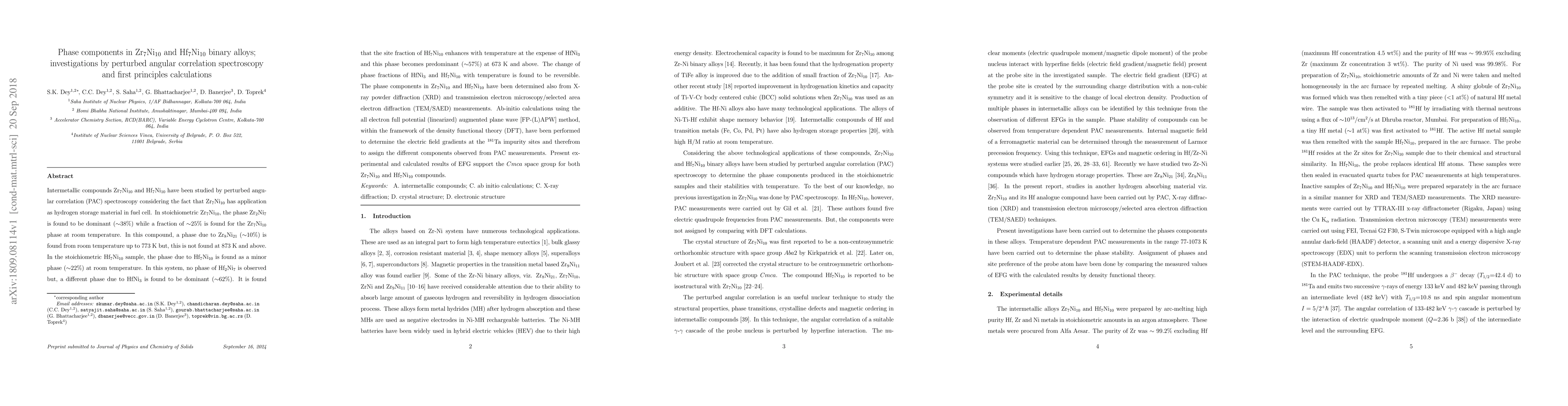 Intermetallic compounds Zr7Ni10 and Hf7Ni10 have been studied by perturbed angular correlation (PAC) spectroscopy considering the fact that Zr7Ni10 has application as hydrogen storage material in fuel cell. In stoichiometric Zr7Ni10, the phase Zr2Ni7 is found to be dominant (~38%) while a fraction of ~25% is found for the Zr7Ni10 phase at room temperature. In this compound, a phase due to Zr8Ni21 (~10%) is found from room temperature up to 773 K but, this is not found at 873 K and above. In the stoichiometric Hf7Ni10 sample, the phase due to Hf7Ni10 is found as a minor phase (~22%) at room temperature. In this system, no phase of Hf2Ni7 is observed but, a different phase due to HfNi3 is found to be dominant (~62%). It is found that the site fraction of Hf7Ni10 enhances with temperature at the expense of HfNi3 and this phase becomes predominant (~57%) at 673 K and above. The change of phase fractions of HfNi3 and Hf7Ni10 with temperature is found to be reversible. The phase components in Zr7Ni10 and Hf7Ni10 have been determined also from X-ray powder diffraction (XRD) and transmission electron microscopy/selected area electron diffraction (TEM/SAED) measurements. Ab-initio calculations using the all electron full potential (linearized) augmented plane wave [FP-(L)APW] method, within the framework of the density functional theory (DFT), have been performed to determine the electric field gradients at the 181Ta impurity sites and therefrom to assign the different components observed from PAC measurements. Present experimental and calculated results of EFG support the Cmca space group for both Zr7Ni10 and Hf7Ni10 compounds.