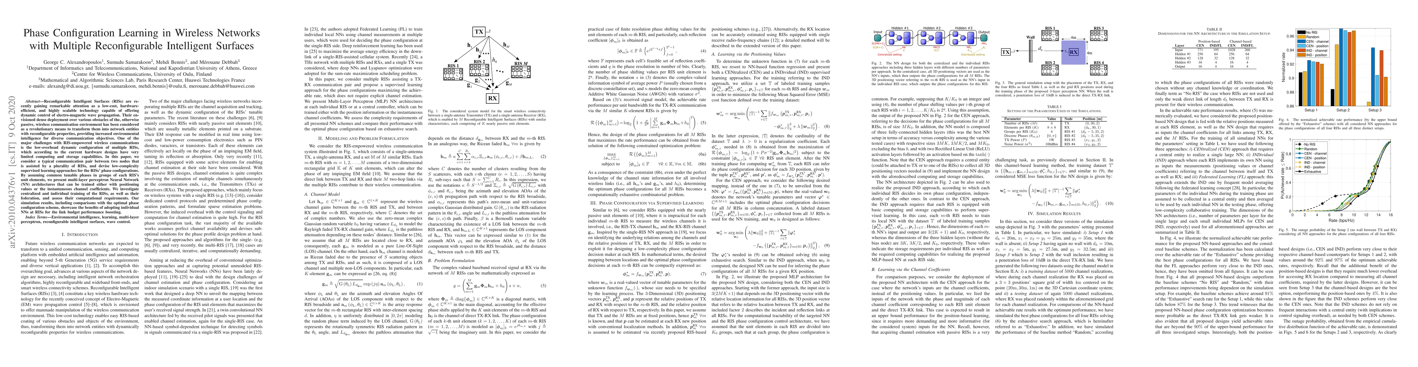 This paper explores low-complexity supervised learning techniques for configuring phase settings in multiple Reconfigurable Intelligent Surfaces (RISs) to enhance wireless communication. It proposes neural network architectures for training RISs, comparing centralized, individual, and federated training methods, and demonstrates improved link budget performance using individual neural networks.