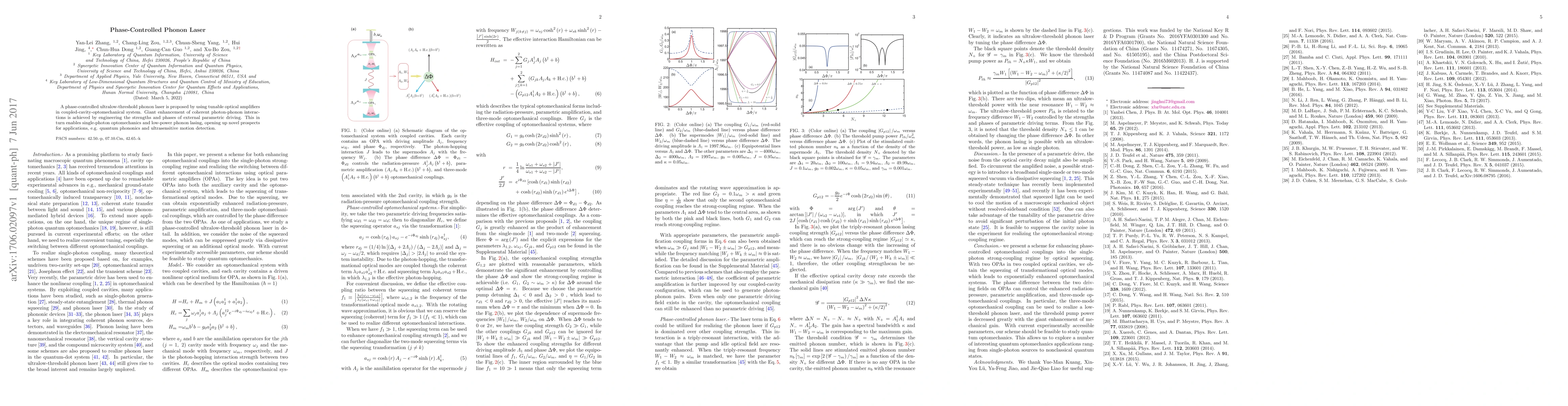 The paper proposes a phase-controlled phonon laser utilizing tunable optical amplifiers in a coupled-cavity-optomechanical system, achieving significant enhancement of coherent photon-phonon interactions and enabling single-photon optomechanics and low-power phonon lasing. This innovation holds potential for applications in quantum phononics and ultrasensitive motion detection.