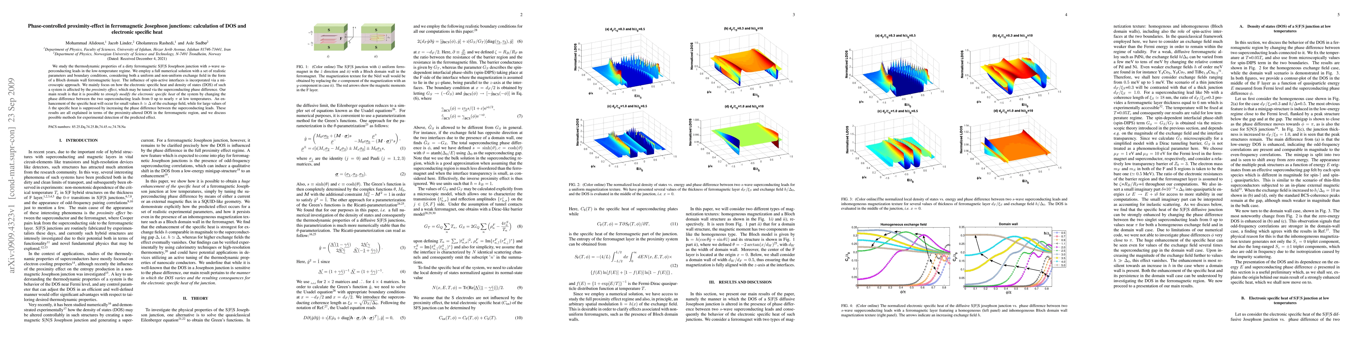 This paper investigates the thermodynamic properties of ferromagnetic Josephson junctions, focusing on how the electronic specific heat and density of states are influenced by the proximity effect and the superconducting phase difference. The study reveals that the electronic specific heat can be strongly modified by adjusting the phase difference, with enhancements or suppressions depending on the exchange field strength.