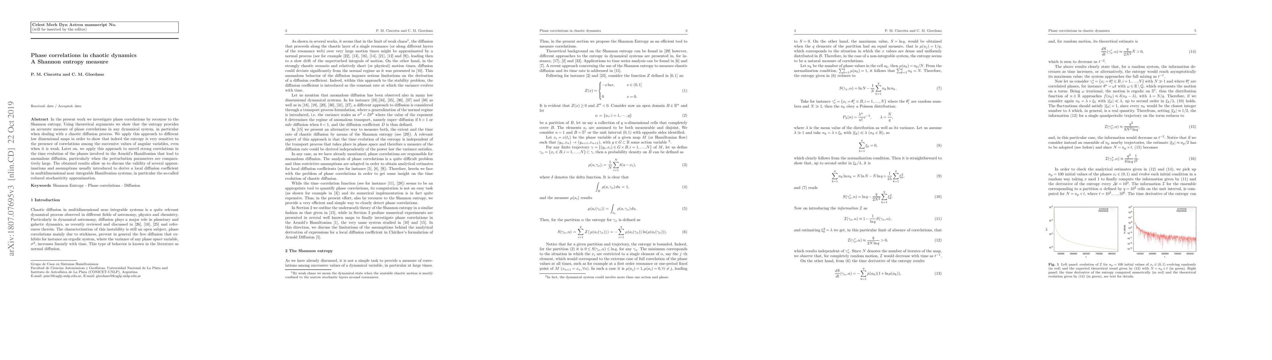 The paper introduces the use of Shannon entropy as a measure of phase correlations in chaotic dynamics, providing theoretical arguments and numerical evidence for its effectiveness.