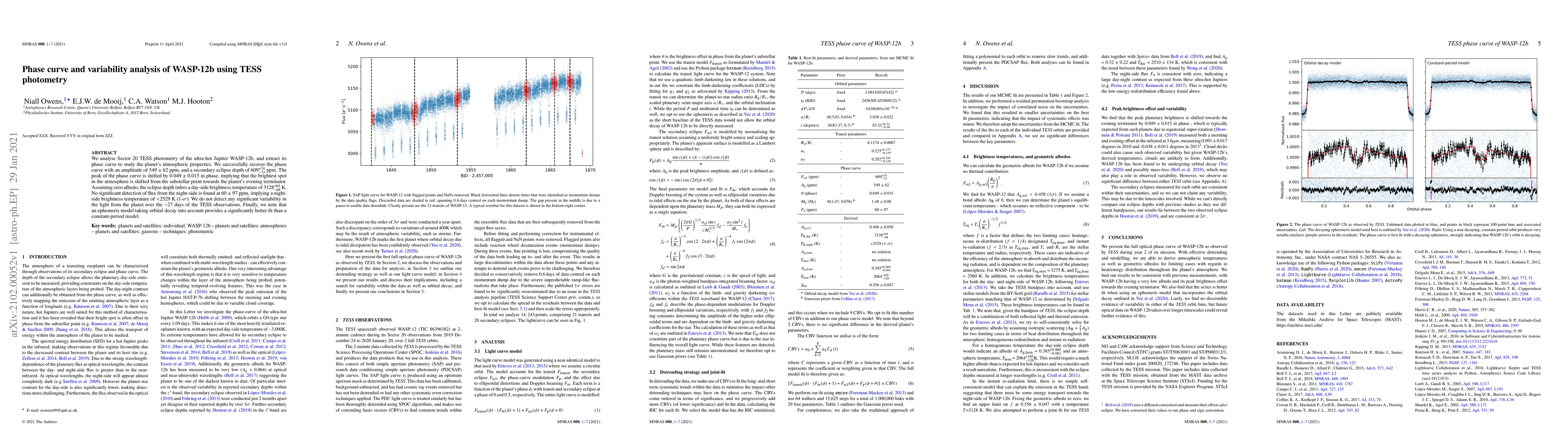 Researchers analyzed TESS photometry of WASP-12b to study its atmospheric properties, recovering a phase curve with details on brightness temperatures and variability.