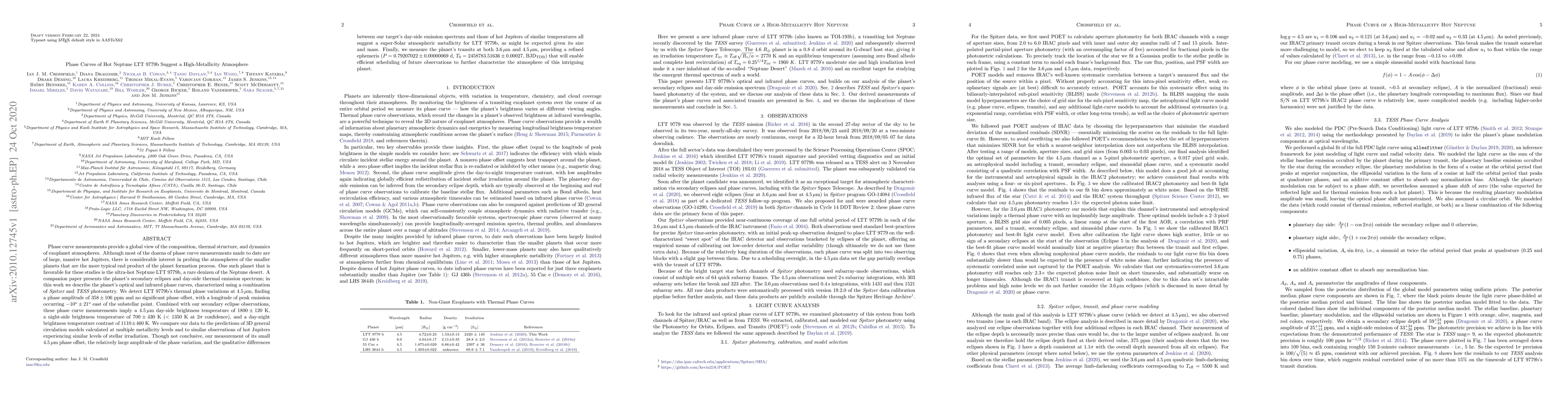 The study presents a comprehensive analysis of LTT 9779b's phase curves using Spitzer and TESS data, combining observations with 3D GCMs to infer atmospheric properties and metallicity.
