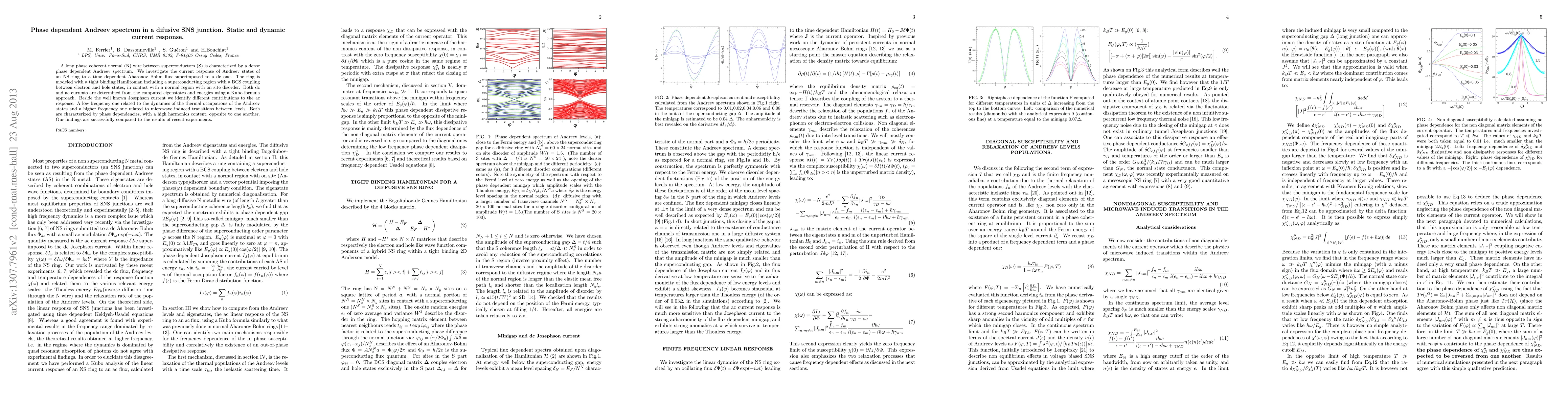 A long phase coherent normal (N) wire between superconductors (S) is characterized by a dense phase dependent Andreev spectrum. We investigate the current response of Andreev states of an NS ring to a time dependent Aharonov Bohm flux superimposed to a dc one. The ring is modeled with a tight binding Hamiltonian including a superconducting region with a BCS coupling between electron and hole states, in contact with a normal region with on site disorder. Both dc and ac currents are determined from the computed eigenstates and energies using a Kubo formula approach. Beside the well known Josephson current we identify different contributions to the ac response. A low frequency one related to the dynamics of the thermal occupations of the Andreev states and a higher frequency one related to microwave induced transitions between levels. Both are characterized by strongly anharmonic phase dependencies which are nearly opposite to one another. Our findings are successfully compared to the results of recent experiments.