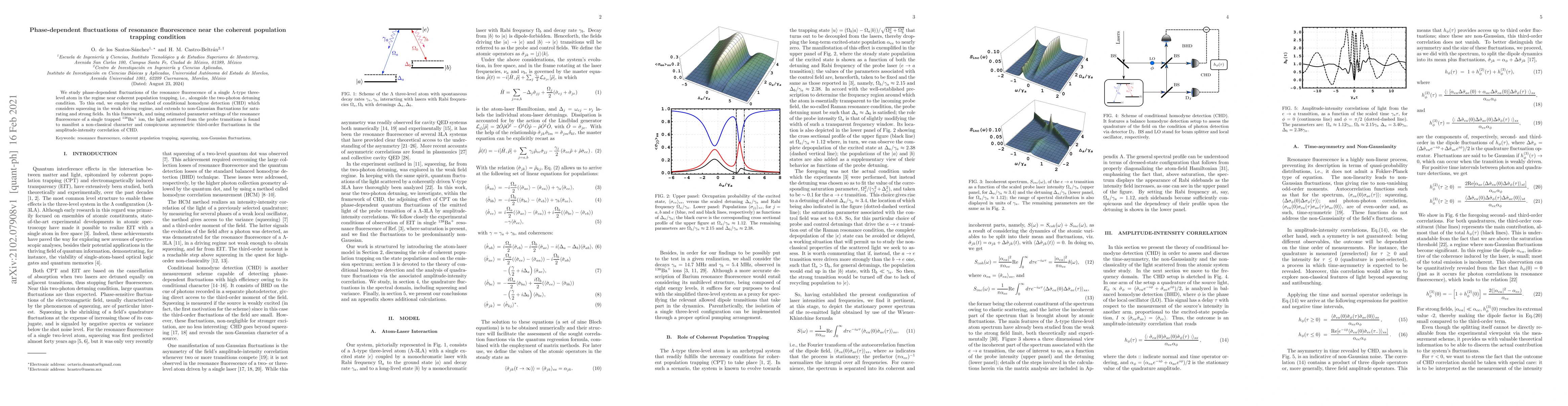This paper investigates phase-dependent fluctuations in resonance fluorescence of a single $\Lambda$-type three-level atom near coherent population trapping, using conditional homodyne detection. The study reveals non-classical light characteristics and asymmetric third-order fluctuations in the amplitude-intensity correlation of the detected light.