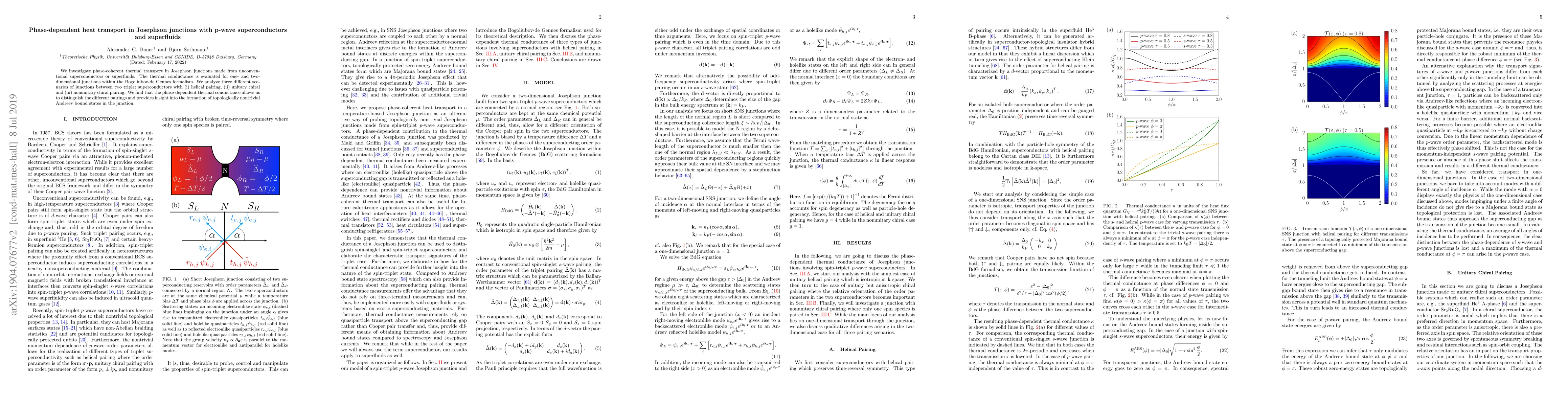 This paper examines phase-coherent thermal transport in Josephson junctions utilizing unconventional superconductors or superfluids, revealing distinct thermal conductance patterns that differentiate between various triplet pairing types and highlight topologically nontrivial Andreev bound states.