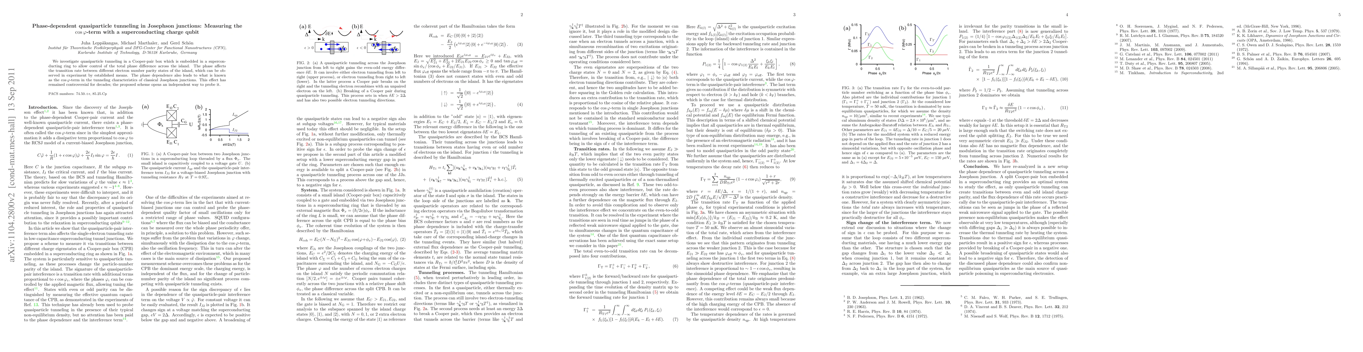 This paper explores quasiparticle tunneling in a superconducting charge qubit embedded in a ring, allowing phase control over the island. The study aims to measure the controversial cos-phi term in tunneling characteristics, providing a new method to investigate this long-debated phenomenon.