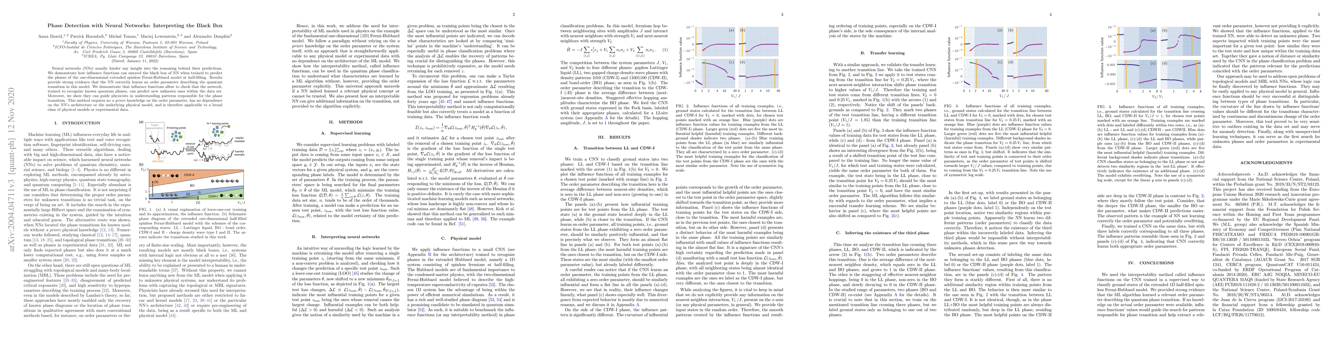 Neural networks (NNs) usually hinder any insight into the reasoning behind their predictions. We demonstrate how influence functions can unravel the black box of NN when trained to predict the phases of the one-dimensional extended spinless Fermi-Hubbard model at half-filling. Results provide strong evidence that the NN correctly learns an order parameter describing the quantum transition in this model. We demonstrate that influence functions allow to check that the network, trained to recognize known quantum phases, can predict new unknown ones within the data set. Moreover, we show they can guide physicists in understanding patterns responsible for the phase transition. This method requires no a priori knowledge on the order parameter, has no dependence on the NN's architecture or the underlying physical model, and is therefore applicable to a broad class of physical models or experimental data.