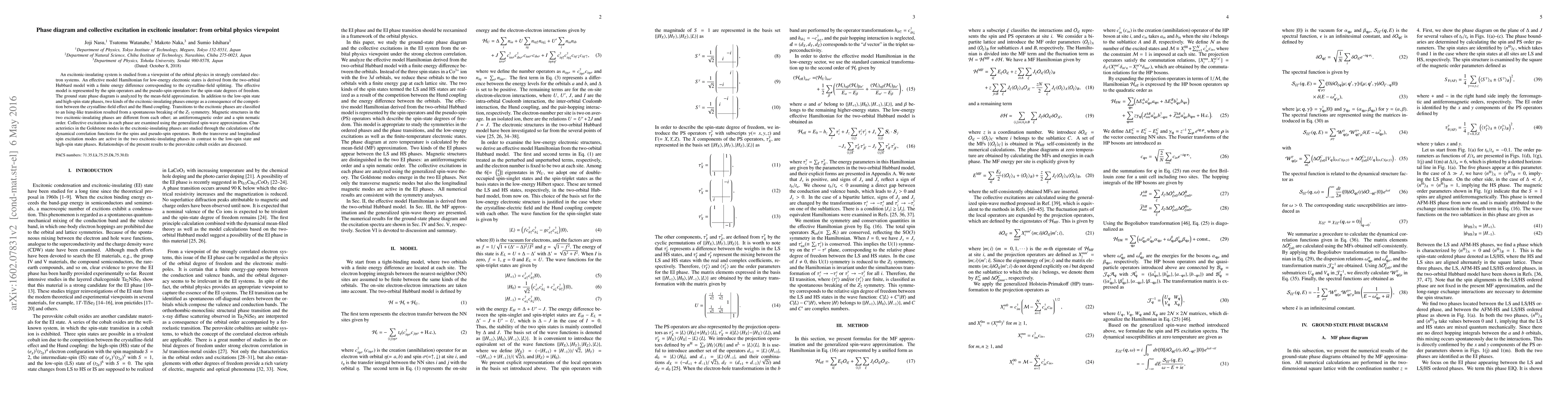 This paper investigates excitonic insulating systems from an orbital physics perspective, deriving an effective model from the two-orbital Hubbard model. It reveals distinct excitonic insulating phases and their magnetic structures, and analyzes collective excitations using the generalized spin-wave method, highlighting differences in spin excitation modes across phases.