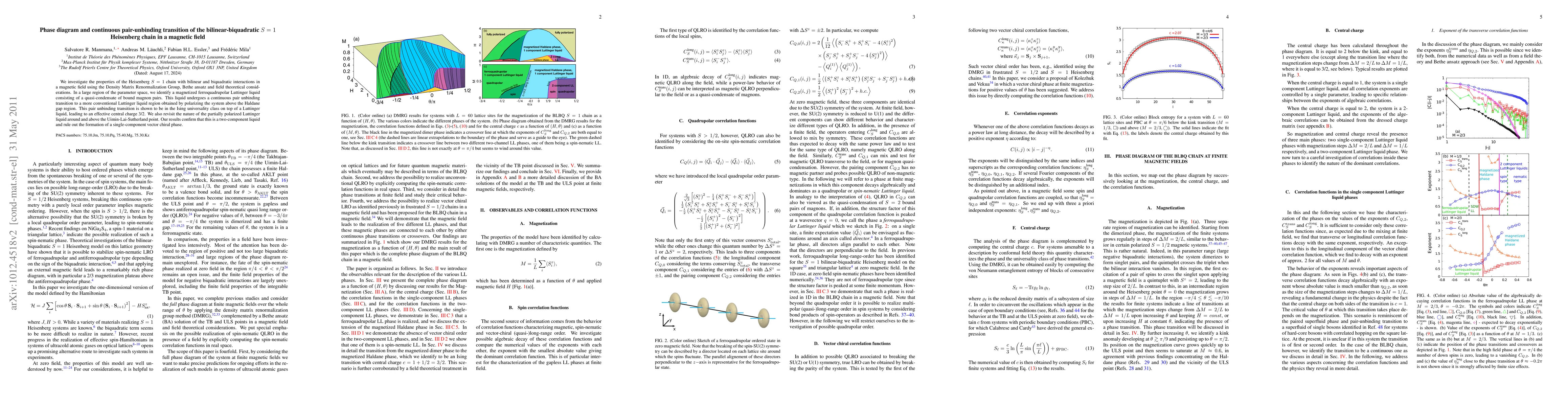 We investigate the properties of the Heisenberg S=1 chain with bilinear and biquadratic interactions in a magnetic field using the Density Matrix Renormalization Group, Bethe ansatz and field theoretical considerations. In a large region of the parameter space, we identify a magnetized ferroquadrupolar Luttinger liquid consisting of a quasi-condensate of bound magnon pairs. This liquid undergoes a continuous pair unbinding transition to a more conventional Luttinger liquid region obtained by polarizing the system above the Haldane gap region. This pair unbinding transition is shown to be in the Ising universality class on top of a Luttinger liquid, leading to an effective central charge 3/2. We also revisit the nature of the partially polarized Luttinger liquid around and above the Uimin-Lai-Sutherland point. Our results confirm that this is a two-component liquid and rule out the formation of a single-component vector chiral phase.