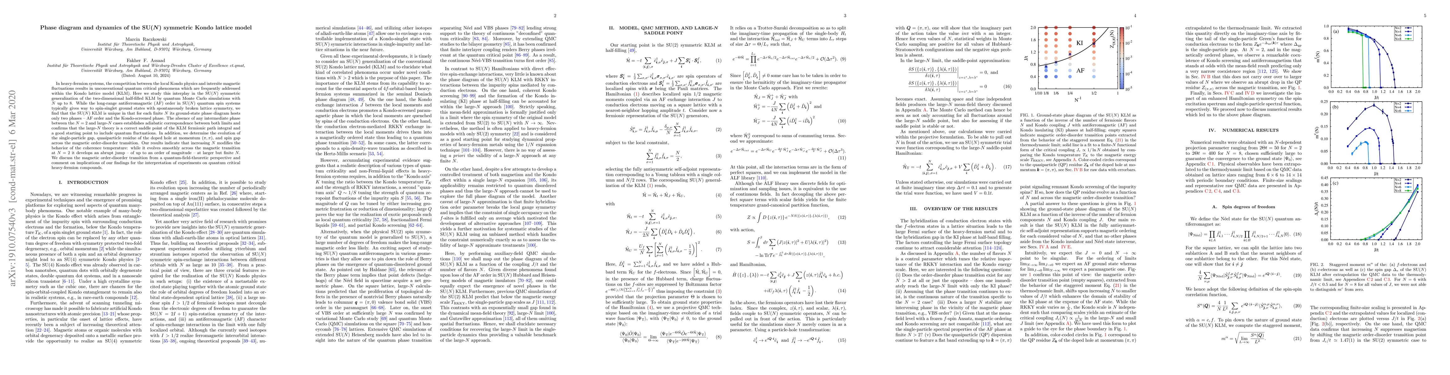 In heavy-fermion systems, the competition between the local Kondo physics and intersite magnetic fluctuations results in unconventional quantum critical phenomena which are frequently addressed within the Kondo lattice model (KLM). Here we study this interplay in the SU($N$) symmetric generalization of the two-dimensional half-filled KLM by quantum Monte Carlo simulations with $N$ up to 8. While the long-range antiferromagnetic (AF) order in SU($N$) quantum spin systems typically gives way to spin-singlet ground states with spontaneously broken lattice symmetry, we find that the SU($N$) KLM is unique in that for each finite $N$ its ground-state phase diagram hosts only two phases -- AF order and the Kondo-screened phase. The absence of any intermediate phase between the $N=2$ and large-$N$ cases establishes adiabatic correspondence between both limits and confirms that the large-$N$ theory is a correct saddle point of the KLM fermionic path integral and a good starting point to include quantum fluctuations. In addition, we determine the evolution of the single-particle gap, quasiparticle residue of the doped hole at momentum $(\pi,\pi)$, and spin gap across the magnetic order-disorder transition. Our results indicate that increasing $N$ modifies the behavior of the coherence temperature: while it evolves smoothly across the magnetic transition at $N=2$ it develops an abrupt jump -- of up to an order of magnitude -- at larger but finite $N$. We discuss the magnetic order-disorder transition from a quantum-field-theoretic perspective and comment on implications of our findings for the interpretation of experiments on quantum critical heavy-fermion compounds.
