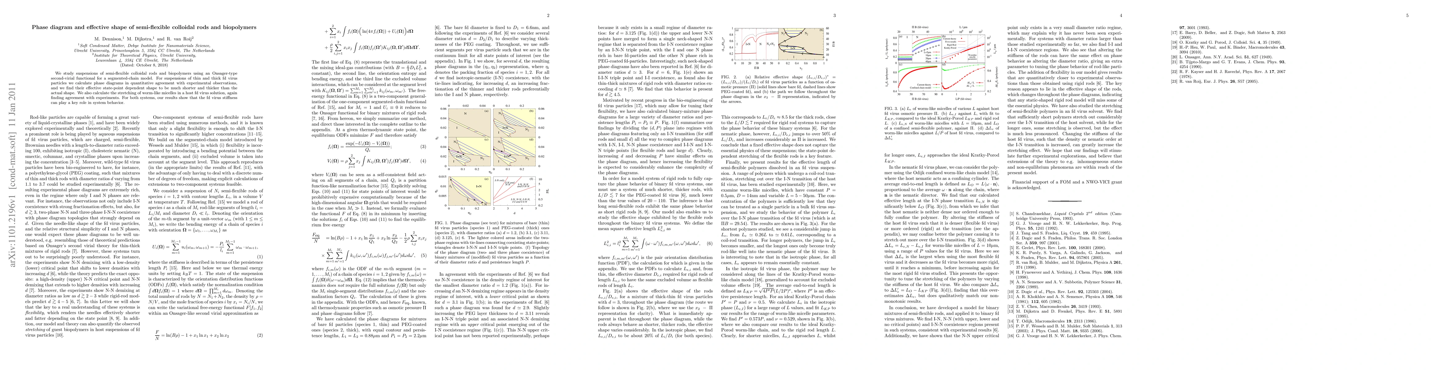 We study suspensions of semi-flexible colloidal rods and biopolymers using an Onsager-type second-virial functional for a segmented-chain model. For suspensions of thin and thick fd virus particles we calculate phase diagrams in quantitative agreement with experimental observations, and we find their effective state-point dependent shape to be much shorter and thicker than the actual shape. We also calculate the stretching of worm-like micelles in a host fd virus solution, again finding agreement with experiments. For both systems, our results show that the fd virus stiffness can play a key role in system behavior.