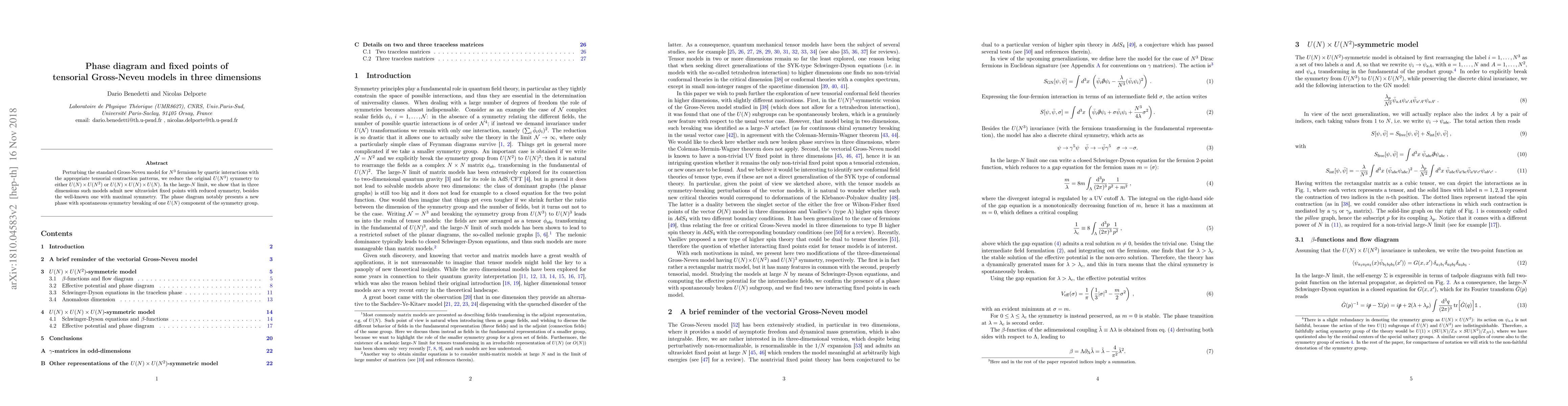 Perturbing the standard Gross-Neveu model for $N^3$ fermions by quartic interactions with the appropriate tensorial contraction patterns, we reduce the original $U(N^3)$ symmetry to either $U(N)\times U(N^2)$ or $U(N)\times U(N)\times U(N)$. In the large-$N$ limit, we show that in three dimensions such models admit new ultraviolet fixed points with reduced symmetry, besides the well-known one with maximal symmetry. The phase diagram notably presents a new phase with spontaneous symmetry breaking of one $U(N)$ component of the symmetry group.