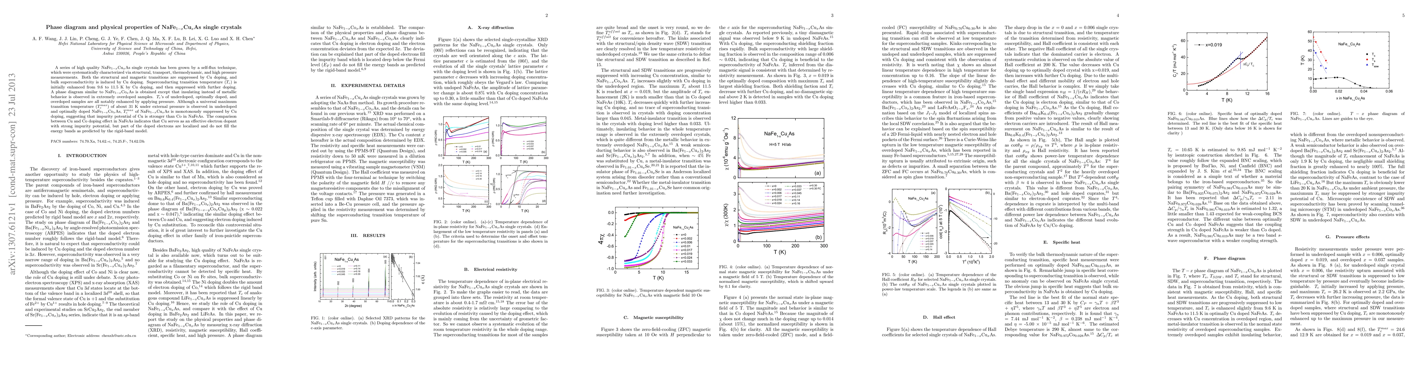This study investigates NaFe$_{1-x}$Cu$_x$As single crystals grown by self-flux, showing suppression of structural and magnetic transitions with Cu doping. Superconducting transition temperature ($T_c$) is enhanced initially but suppressed at higher doping levels, and pressure notably boosts $T_c$ across doping regimes.