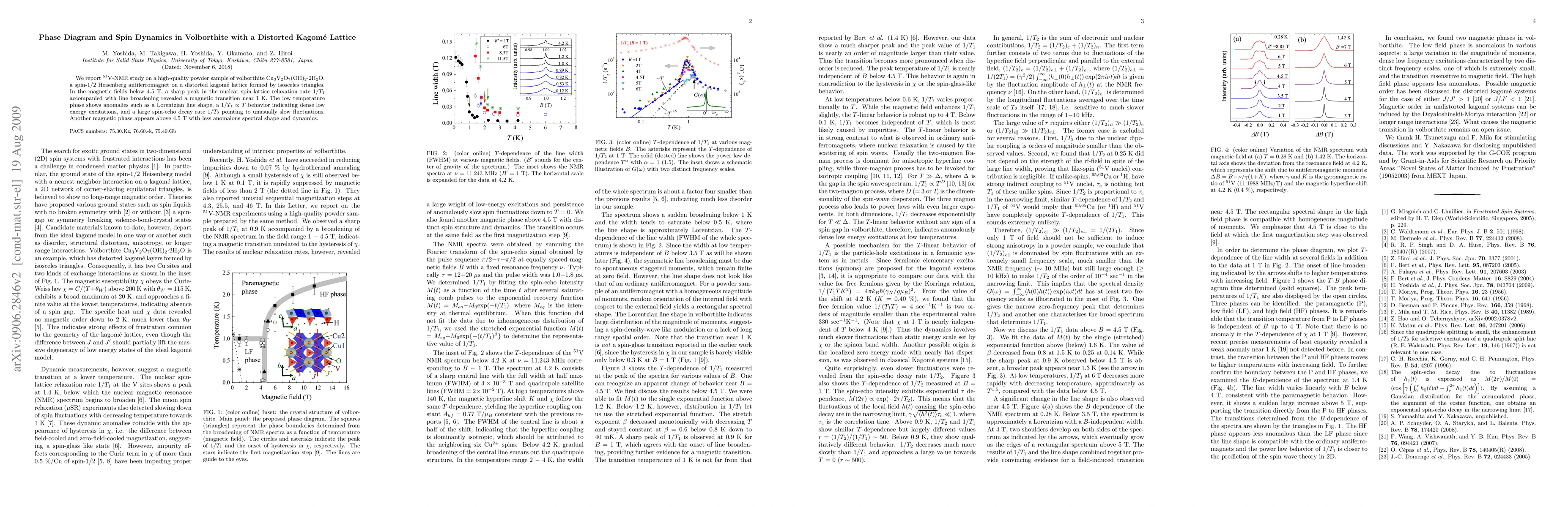 This study uses 51V-NMR to investigate volborthite, a spin-1/2 Heisenberg antiferromagnet on a distorted kagome lattice, revealing a magnetic transition near 1 K with unusual spin dynamics and excitations. Above 4.5 T, a different magnetic phase with less anomalous spectral behavior is observed.