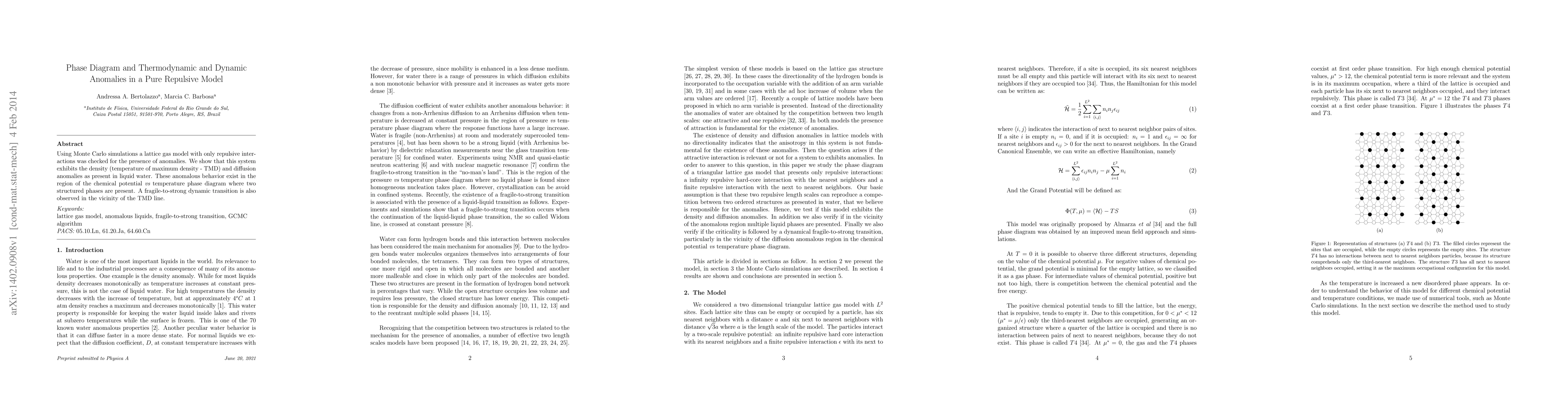 Using Monte Carlo simulations a lattice gas model with only repulsive interactions was checked for the presence of anomalies. We show that this system exhibits the density (temperature of maximum density - TMD) and diffusion anomalies as present in liquid water. These anomalous behavior exist in the region of the chemical potential vs temperature phase diagram where two structured phases are present. A fragile-to-strong dynamic transition is also observed in the vicinity of the TMD line.