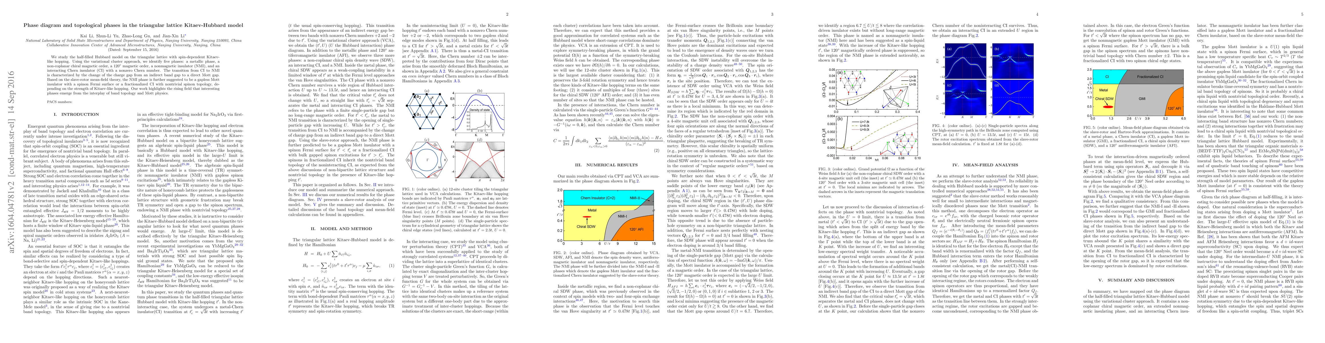 This paper investigates the phase diagram of the half-filled Kitaev-Hubbard model on a triangular lattice, identifying five distinct phases using the variational cluster approach. The study reveals a complex interplay between band topology and Mott physics, leading to metallic, magnetic, and insulating phases, including an interacting Chern insulator.