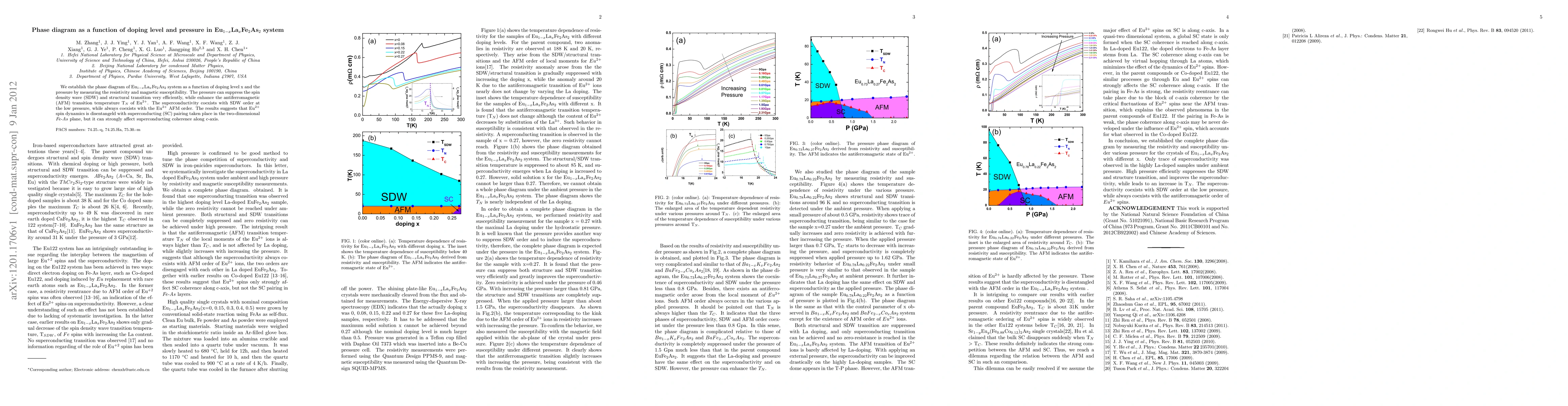 This study establishes the phase diagram of the Eu$_{1-x}$La$_x$Fe$_2$As$_2$ system under varying doping and pressure, revealing that pressure suppresses spin density wave and structural transitions while enhancing the antiferromagnetic transition temperature. Superconductivity coexists with both spin density wave and Eu$^{2+}$ antiferromagnetic orders, indicating that Eu$^{2+}$ spin dynamics influence superconducting coherence along the c-axis.