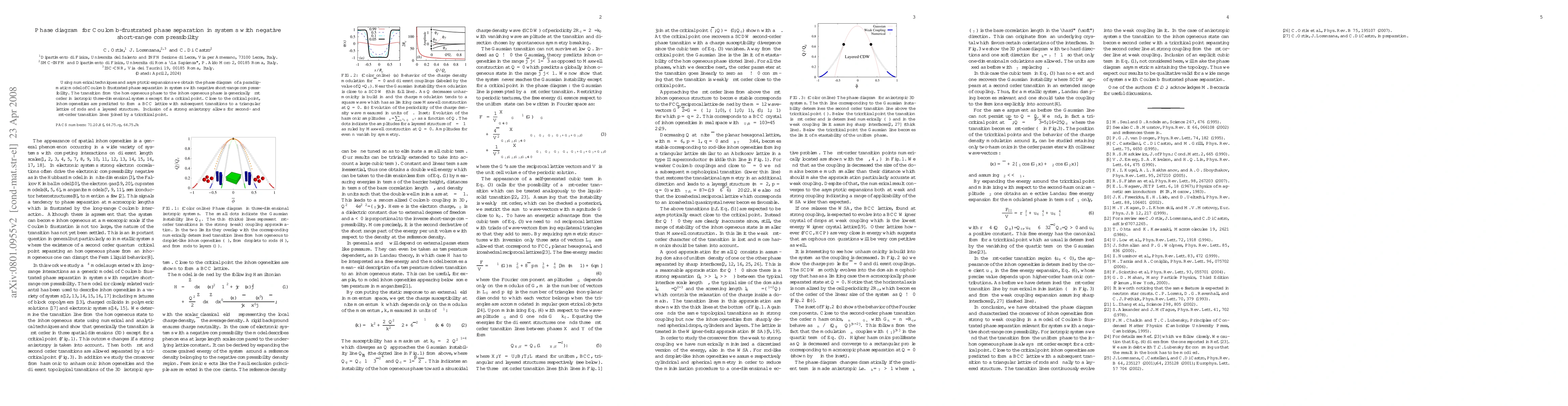 This paper presents a phase diagram for Coulomb-frustrated phase separation in systems with negative short-range compressibility, revealing first-order transitions generally except near a critical point where BCC lattice inhomogeneities form. Strong anisotropy allows for mixed second- and first-order transitions converging at a tricritical point.