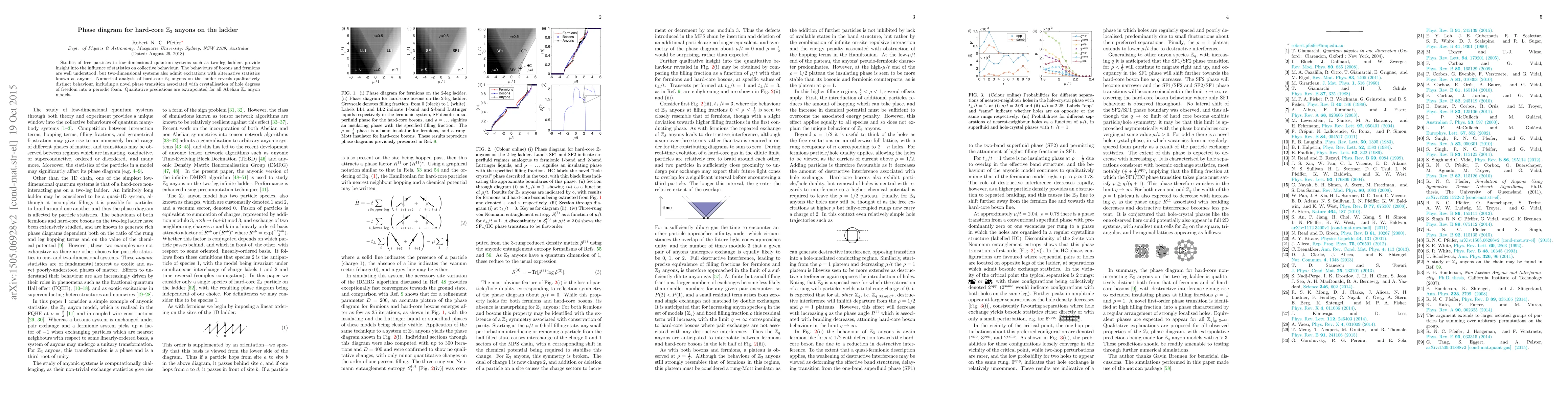 Studies of free particles in low-dimensional quantum systems such as two-leg ladders provide insight into the influence of statistics on collective behaviour. The behaviours of bosons and fermions are well understood, but two-dimensional systems also admit excitations with alternative statistics known as anyons. Numerical analysis of hard-core $\mathbb{Z}_3$ anyons on the ladder reveals qualitatively distinct behaviour, including a novel phase transition associated with crystallisation of hole degrees of freedom into a periodic foam. Qualitative predictions are extrapolated for all Abelian $\mathbb{Z}_q$ anyon models.
