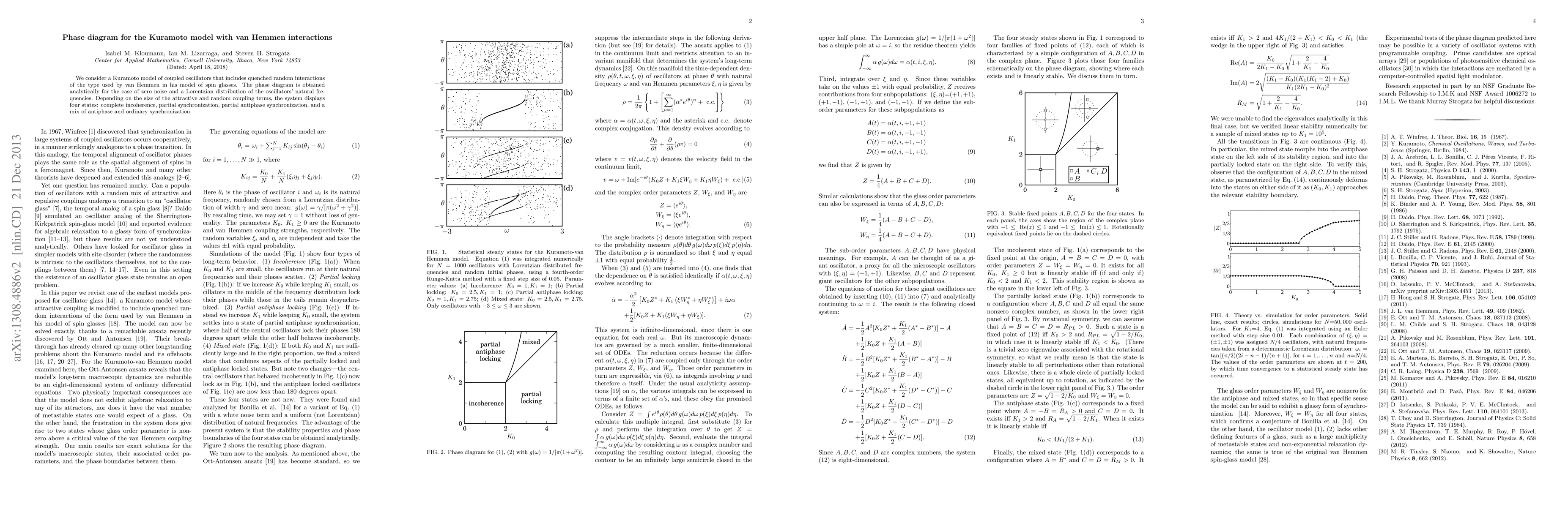 This paper analytically derives the phase diagram for a Kuramoto model with van Hemmen interactions, revealing four states: complete incoherence, partial synchronization, partial antiphase synchronization, and a mix of antiphase and ordinary synchronization, based on the strength of coupling terms.