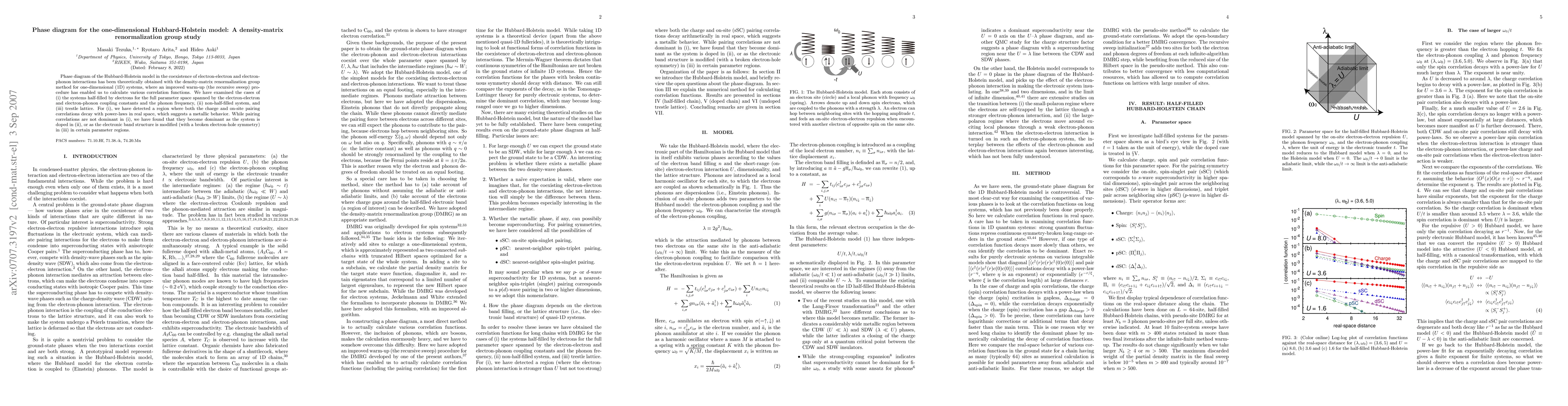 This study uses the density-matrix renormalization group method to explore the phase diagram of the one-dimensional Hubbard-Holstein model, revealing metallic behavior in half-filled systems and dominant pairing correlations in doped or structurally modified systems. The recursive sweep procedure enhances the calculation of correlation functions across various parameter spaces.