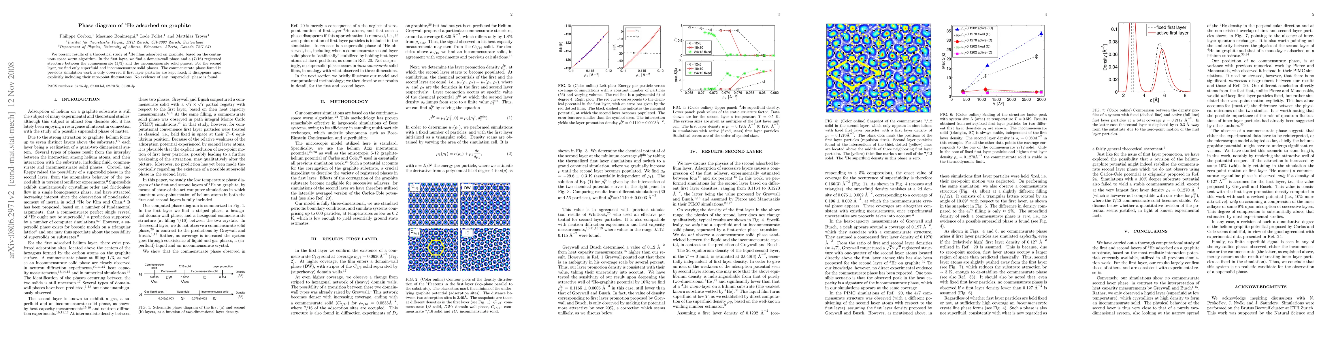 This study uses the continuous space worm algorithm to investigate 4He films on graphite, revealing a domain-wall phase and a (7/16) structure in the first layer, while the second layer only exhibits superfluid and incommensurate solid phases, with no evidence of a supersolid phase.