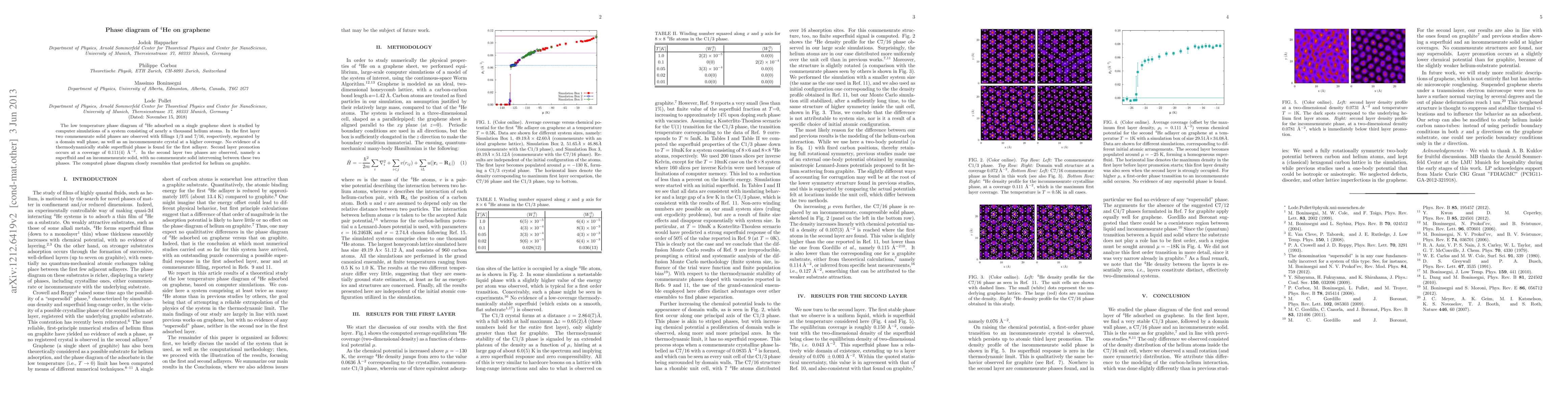 This study uses computer simulations to explore the low-temperature phase behavior of $^4$He on graphene, revealing two commensurate solid phases in the first layer, a domain wall phase, and no stable superfluid phase. The second layer transitions directly to a superfluid phase without an intervening commensurate solid.