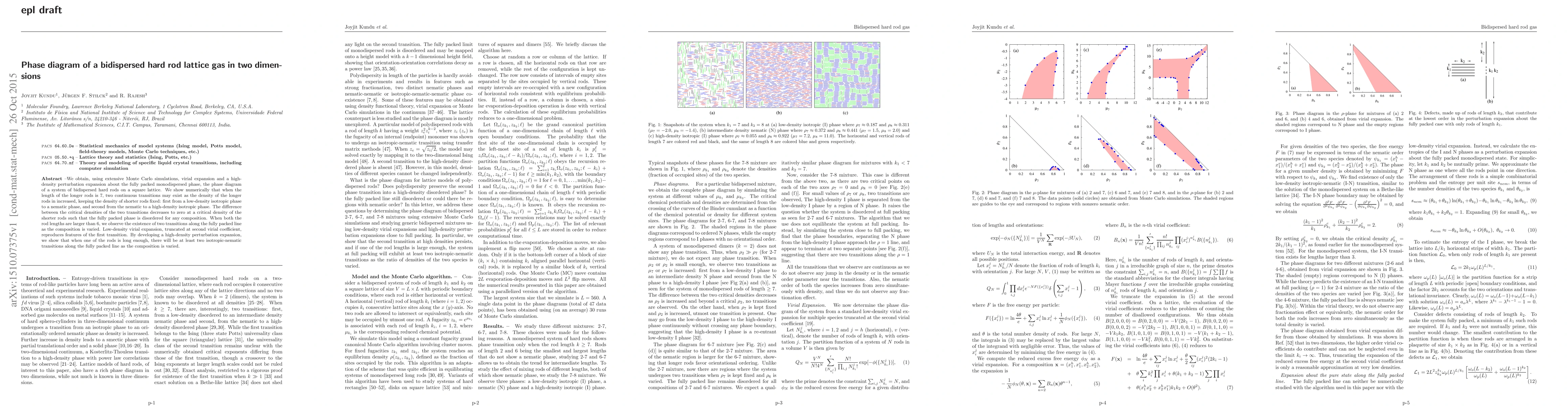 We obtain, using extensive Monte Carlo simulations, virial expansion and a high-density perturbation expansion about the fully packed monodispersed phase, the phase diagram of a system of bidispersed hard rods on a square lattice. We show numerically that when the length of the longer rods is $7$, two continuous transitions may exist as the density of the longer rods in increased, keeping the density of shorter rods fixed: first from a low-density isotropic phase to a nematic phase, and second from the nematic to a high-density isotropic phase. The difference between the critical densities of the two transitions decreases to zero at a critical density of the shorter rods such that the fully packed phase is disordered for any composition. When both the rod lengths are larger than $6$, we observe the existence of two transitions along the fully packed line as the composition is varied. Low-density virial expansion, truncated at second virial coefficient, reproduces features of the first transition. By developing a high-density perturbation expansion, we show that when one of the rods is long enough, there will be at least two isotropic-nematic transitions along the fully packed line as the composition is varied.
