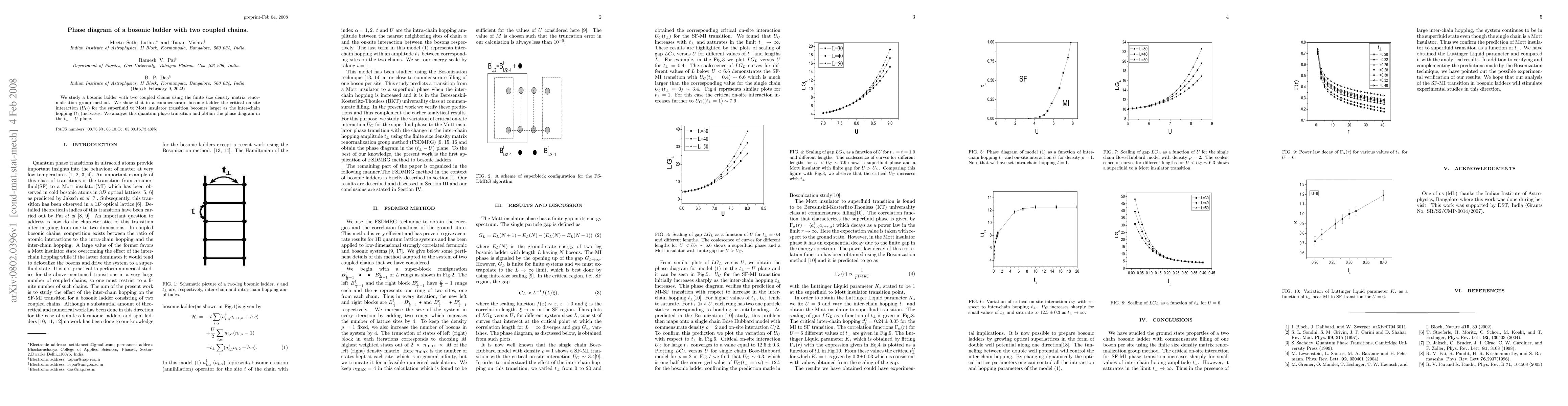 This paper investigates a bosonic ladder system with two coupled chains, revealing that the critical on-site interaction for the superfluid to Mott insulator transition increases with greater inter-chain hopping. The study provides a detailed phase diagram in the inter-chain hopping versus on-site interaction plane.