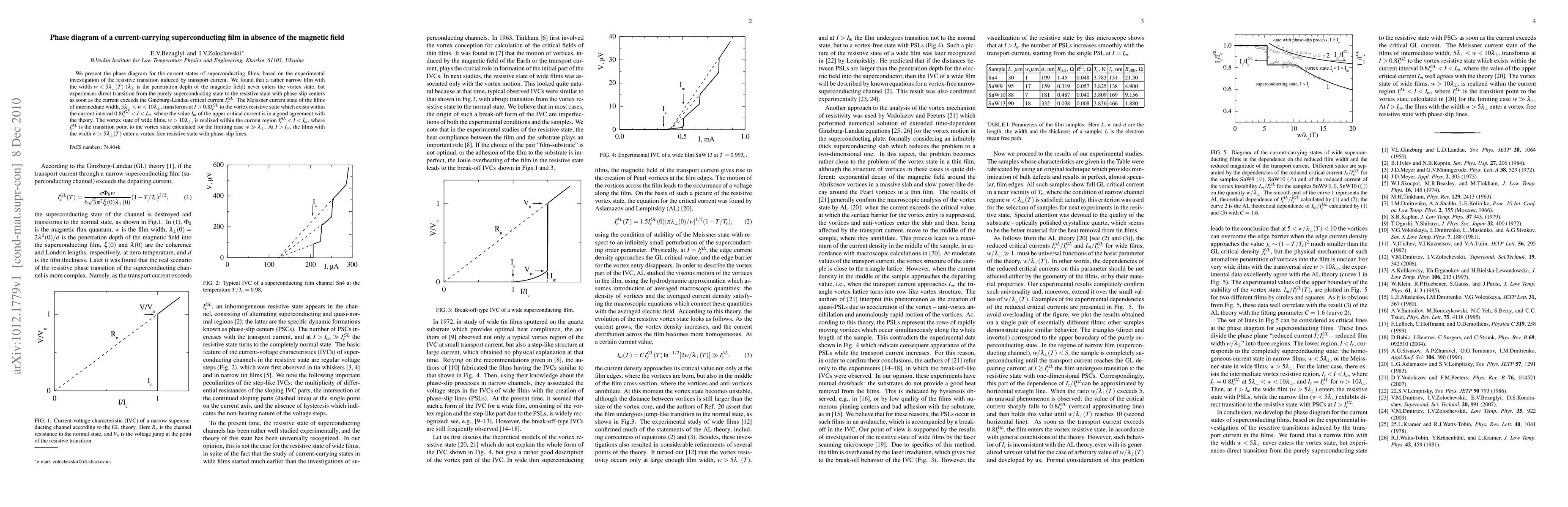 We present the phase diagram for the current states of superconducting films, based on the experimental investigation of the resistive transition induced by transport current. We found that a rather narrow film never enters the vortex state, but experiences direct transition from the purely superconducting state to the resistive state with phase-slip centers as soon as the current exceeds the Ginzburg-Landau critical current Ic. The Meissner current state of the films of intermediate width transforms at I > 0.8Ic to the vortex resistive state which exists within the current interval 0.8Ic < I < Im, where the value Im of the upper critical current is in a good agreement with the theory. The vortex state of wide films is realized within the current region I^{AL} < I < Im, where I^{AL} is the transition point to the vortex state by Aslamazov and Lempitskiy. At I>Im, the wide films enter a vortex-free resistive state with phase-slip lines.