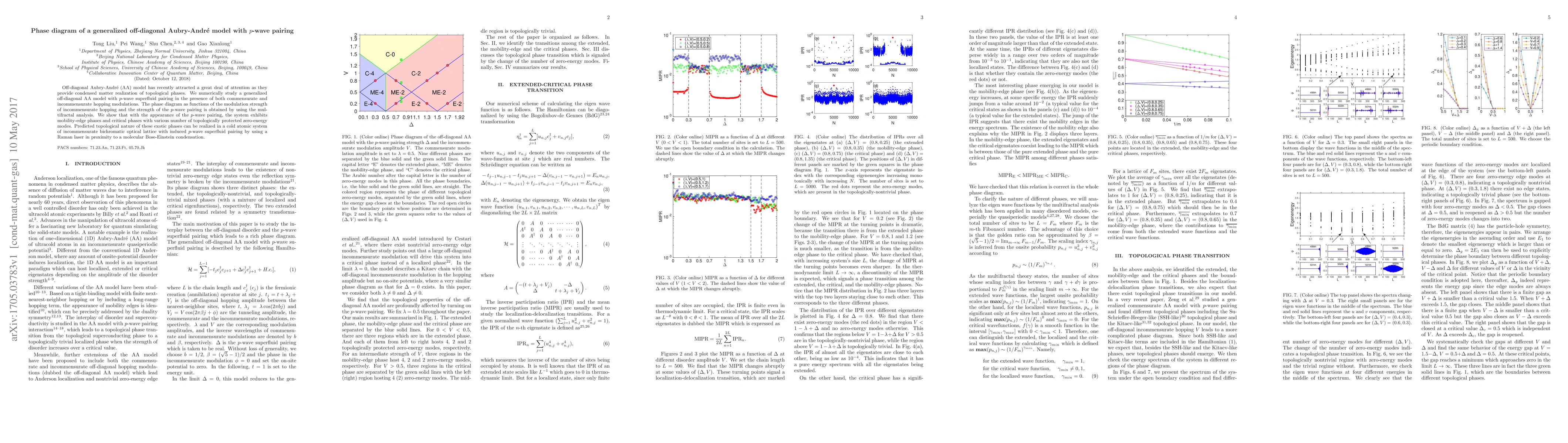 This paper numerically investigates a generalized off-diagonal Aubry-André model with p-wave pairing, revealing a phase diagram characterized by mobility-edge and critical phases with topologically protected zero-energy modes. The study suggests these exotic phases can be realized in cold atomic systems using bichromatic optical lattices and Raman lasers.