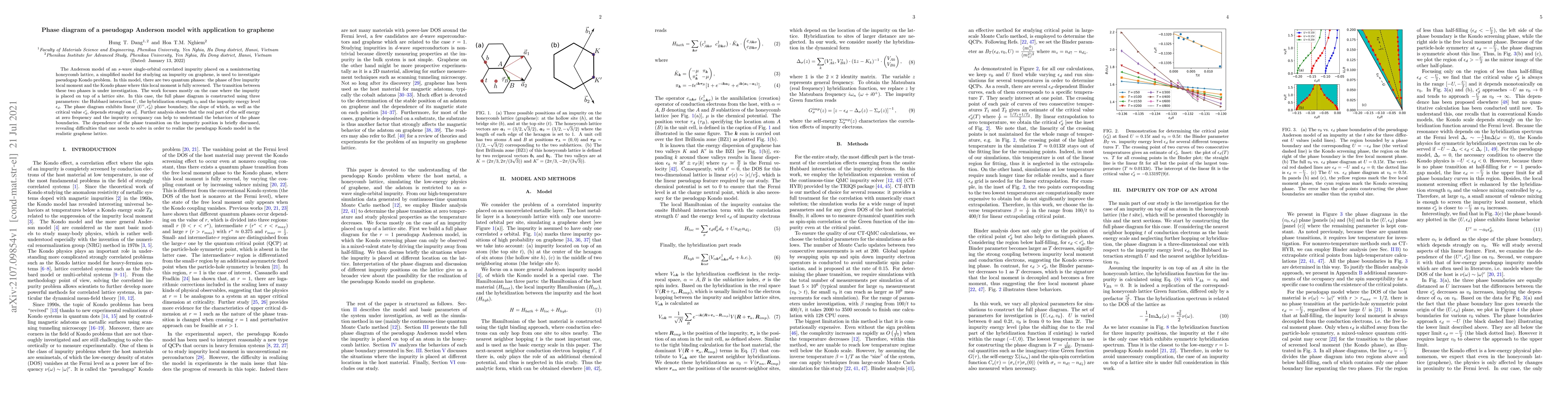 This paper investigates the phase diagram of a pseudogap Anderson model on a noninteracting honeycomb lattice, analogous to graphene, focusing on the transition between a local moment phase and a Kondo phase. The phase diagram is constructed using parameters $U$, $v_0$, and $\epsilon_d$, revealing a linear phase boundary dependent on $v_0^2$ and highlighting the complexities of realizing this model in graphene.