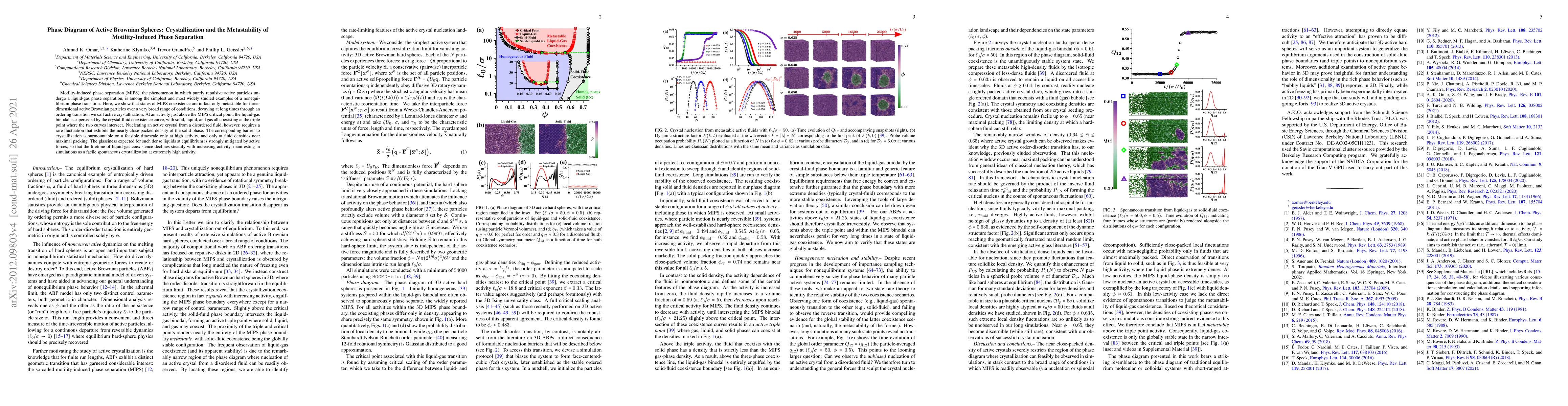 This paper investigates the phase diagram of active Brownian spheres, revealing that motility-induced phase separation is metastable, transitioning to active crystallization at high activity levels. The study finds that the coexistence of liquid-gas phases gives way to a crystal-fluid coexistence at high activity, with spontaneous crystallization occurring at extremely high activity levels.