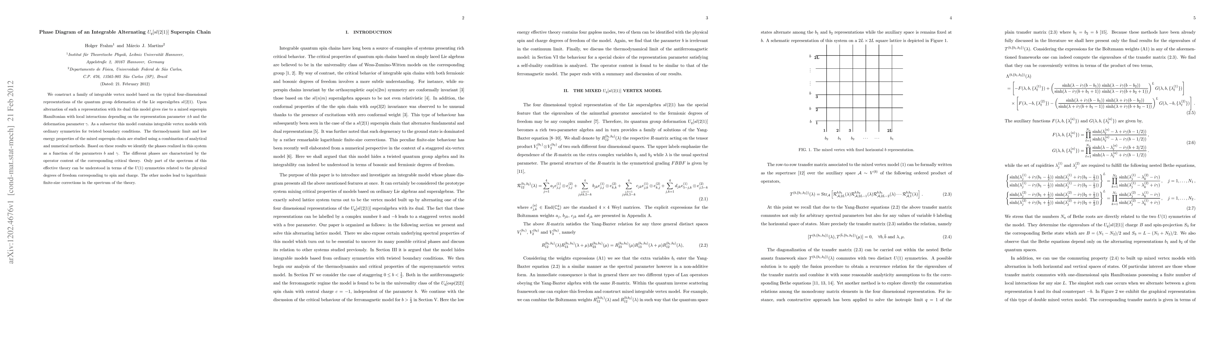 We construct a family of integrable vertex model based on the typical four-dimensional representations of the quantum group deformation of the Lie superalgebra $sl(2|1)$. Upon alternation of such a representation with its dual this model gives rise to a mixed superspin Hamiltonian with local interactions depending on the representation parameter $\pm b$ and the deformation parameter ${\gamma}$. As a subsector this model contains integrable vertex models with ordinary symmetries for twisted boundary conditions. The thermodynamic limit and low energy properties of the mixed superspin chain are studied using a combination of analytical and numerical methods. Based on these results we identify the phases realized in this system as a function of the parameters $b$ and $\gamma$. The different phases are characterized by the operator content of the corresponding critical theory. Only part of the spectrum of this effective theory can be understood in terms of the U(1) symmetries related to the physical degrees of freedom corresponding to spin and charge. The other modes lead to logarithmic finite-size corrections in the spectrum of the theory.