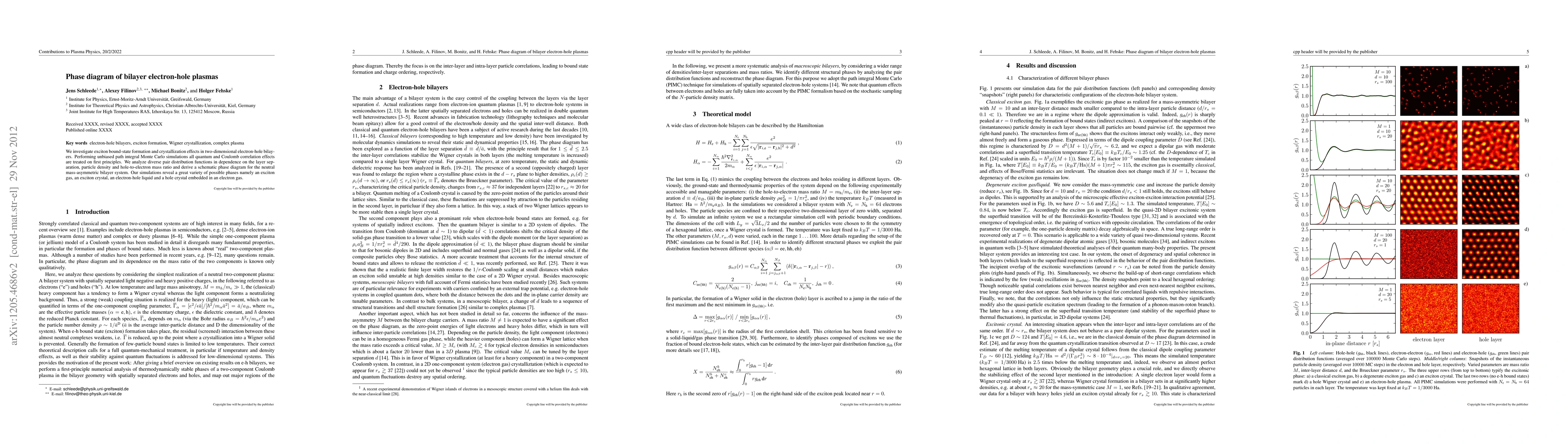 This study uses path integral Monte Carlo simulations to explore the phase behavior of bilayer electron-hole plasmas, revealing diverse phases including exciton gas, exciton crystal, electron-hole liquid, and hole crystal in an electron gas, based on layer separation, density, and mass ratio. The research provides a detailed schematic phase diagram for the system.