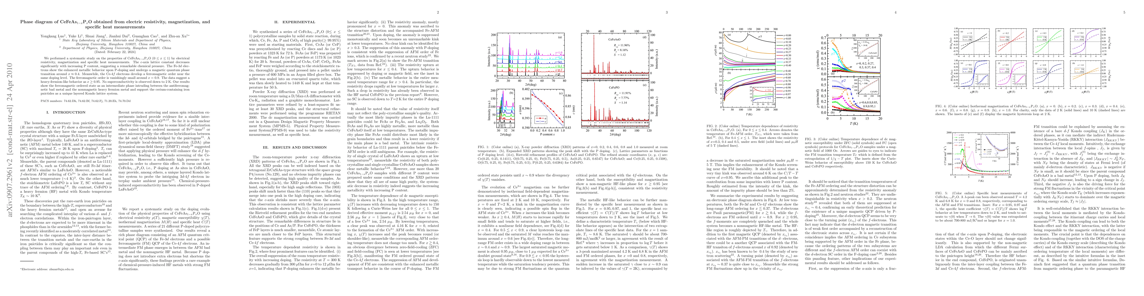 Researchers studied CeFeAs1-xPxO materials for varying P content, discovering a phase transition at x = 0.4 where ferromagnetic order develops and heavy-fermion behavior emerges, but no superconductivity is observed.