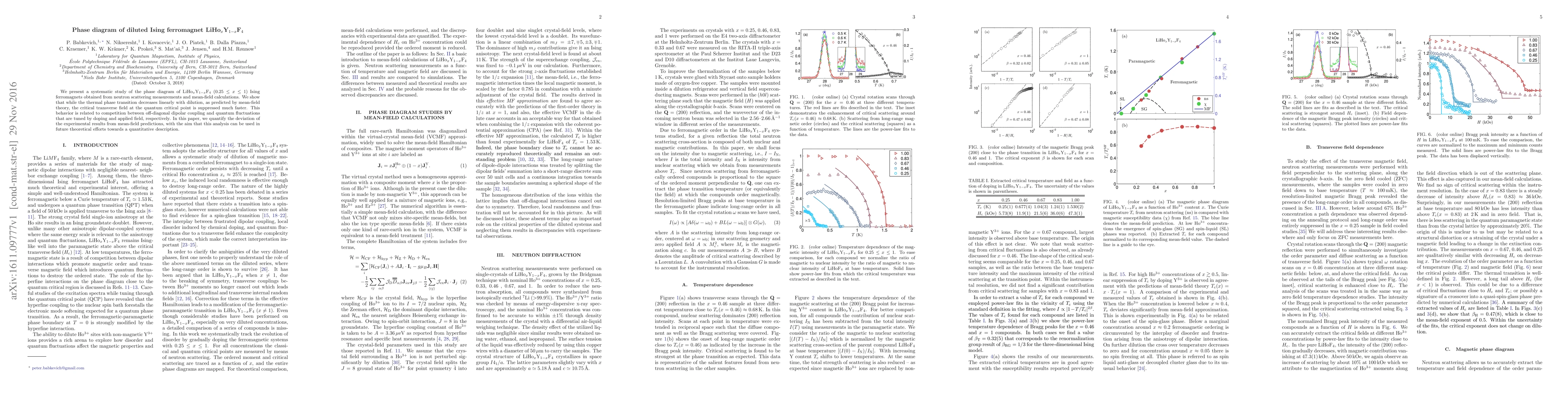 This paper investigates the phase diagram of diluted Ising ferromagnets in LiHo$_x$Y$_{1-x}$F$_4$ using neutron scattering and mean-field calculations, revealing that the thermal phase transition decreases linearly with dilution but the critical transverse field is suppressed much faster due to competition between off-diagonal dipolar coupling and quantum fluctuations. The study aims to quantify deviations from mean-field predictions for future theoretical advancements.