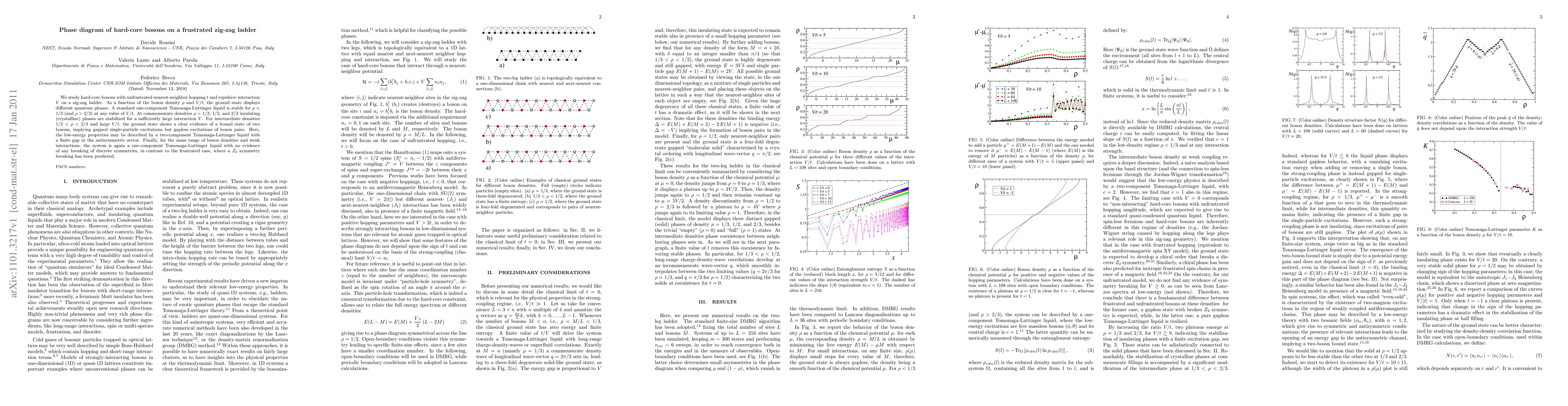 Researchers studied hard-core bosons on a zig-zag ladder and found that their ground state behaves like a Tomonaga-Luttinger liquid with varying phases depending on boson density and interaction strength.