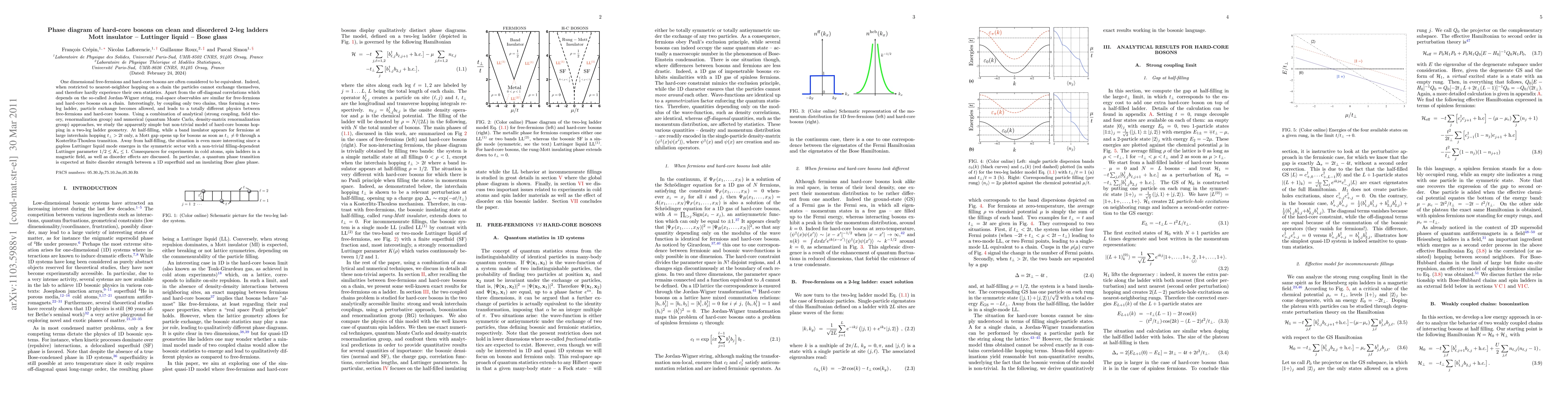 This paper investigates the phase diagram of hard-core bosons on clean and disordered two-leg ladders, revealing distinct behaviors compared to free-fermions. It finds a Mott gap opening for bosons at any interchain hopping, leading to a transition from a band insulator for fermions to a Luttinger liquid for bosons, with implications for cold atom experiments and spin ladders.