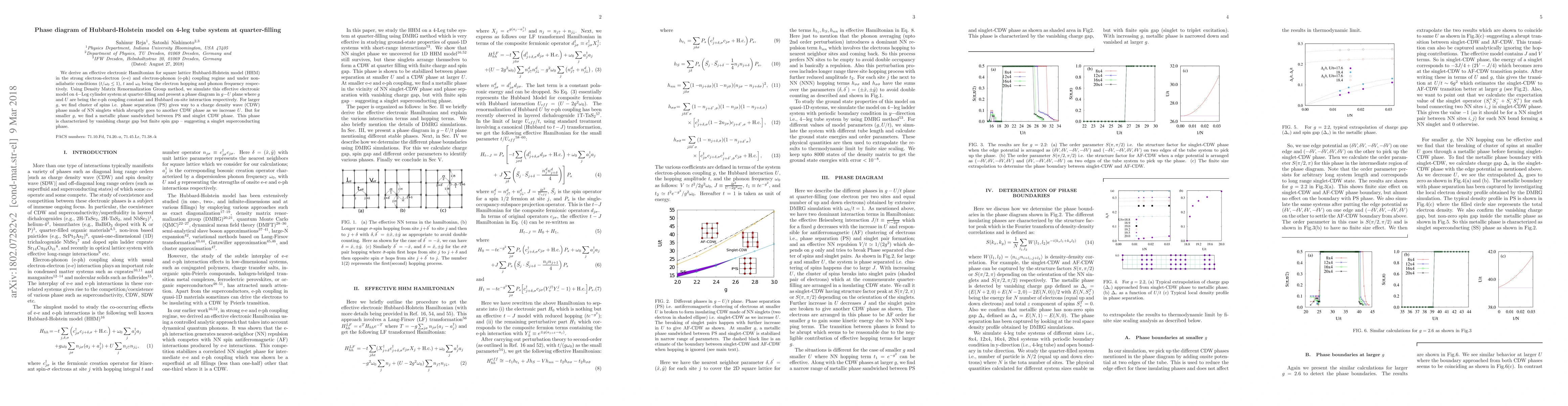 This paper derives an effective Hamiltonian for the Hubbard-Holstein model and simulates it on a 4-leg cylinder system, revealing a phase diagram showing a transition from phase separation to charge density wave phases influenced by electron-phonon coupling and Hubbard interaction. A metallic phase with a finite spin gap suggests singlet superconductivity.